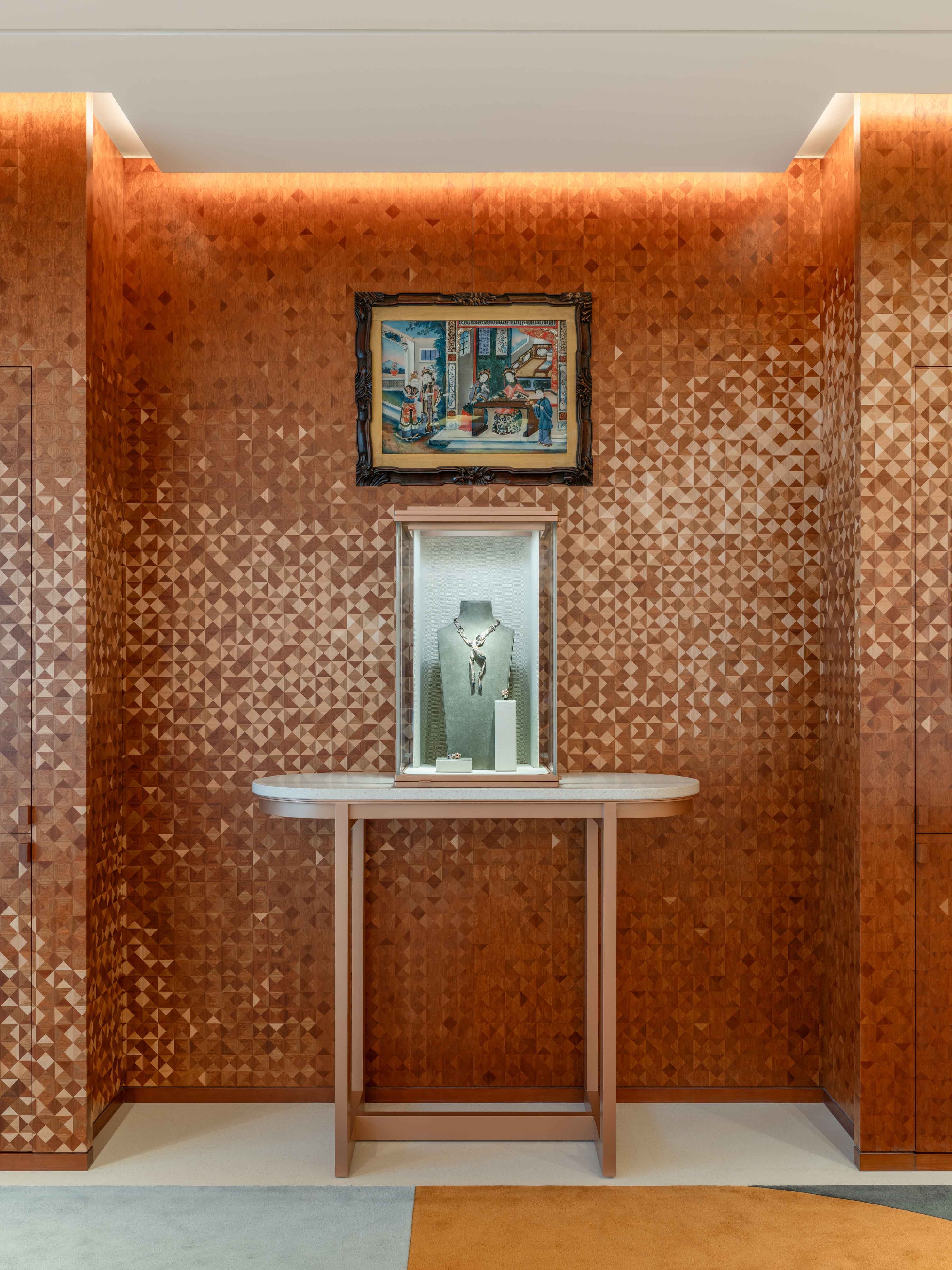从旋转而上的石阶,到层层铺展的丝巾、成衣与家居,让爱马仕十六大工艺不再是陈列,而成为一种被漫游的生活方式。灵感取自紫禁城的建筑语汇,与当代设计悄然交汇,在材质与细节中留下东方的温度。