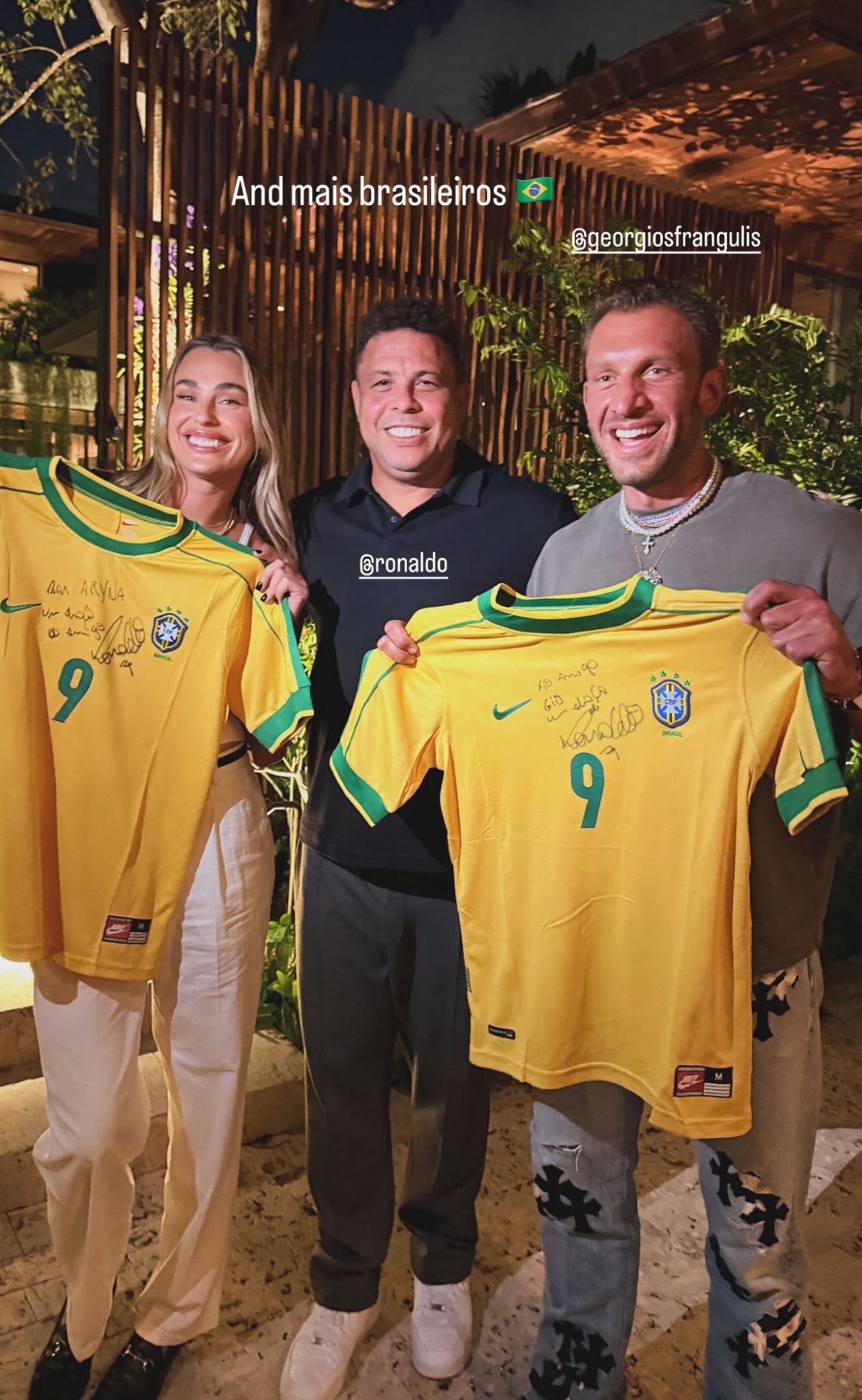 网坛风云 女单世界第一、新科阳光双冠得主萨巴伦卡和未婚夫获赠罗纳尔多签名✍️球服,这下后面比赛的时候现场支持萨巴伦卡的巴西🇧🇷球迷怕是会更多了wta