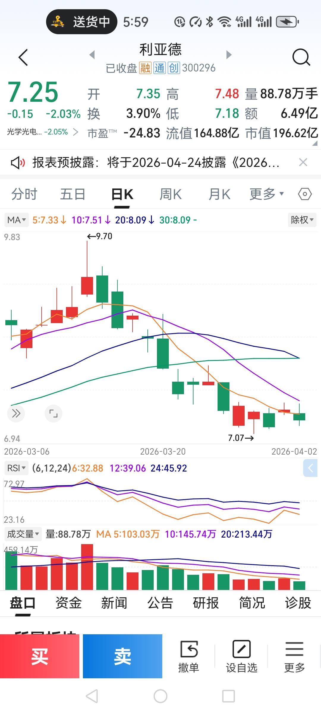 今日A股盘面震荡,手里两只票走势各有特点,简单跟股友们分享下实操和思路~ 中国能建 今天继续走下跌趋势,全天最高冲到2.92,最低下探2.82,最终收盘2.85,走势偏弱。 我的持仓成本在3.053,目前处于浮亏状态,股价短期下降趋势很明显。 心里也没底,不知道明天能不能冲高,明日计划很明确:一旦冲高,就把昨天买入的仓位直接卖出,先做减仓落袋,降低持仓风险,不恋战。 利亚德 这几天走势太有规律了,几乎都是开盘冲高然后回落,股性很适合做T。 今天抓住回调机会,分别在7.28和7.23两个价位补仓,收盘定格在7.25,补仓点位还算不错。 预判明天大概率还是重复今天的冲高回落走势,操作思路不变:明天冲高就把今天补的仓位全部踢出去,只留底仓拿着,稳稳做波段。 炒股就是走一步看一步,跟着盘面调整策略,不贪心、不扛单,做好每一次高抛低吸才是王道。 有没有持仓这两只票的股友?一起来交流交流操作心得~ 炒股收盘笔记 股票实盘复盘