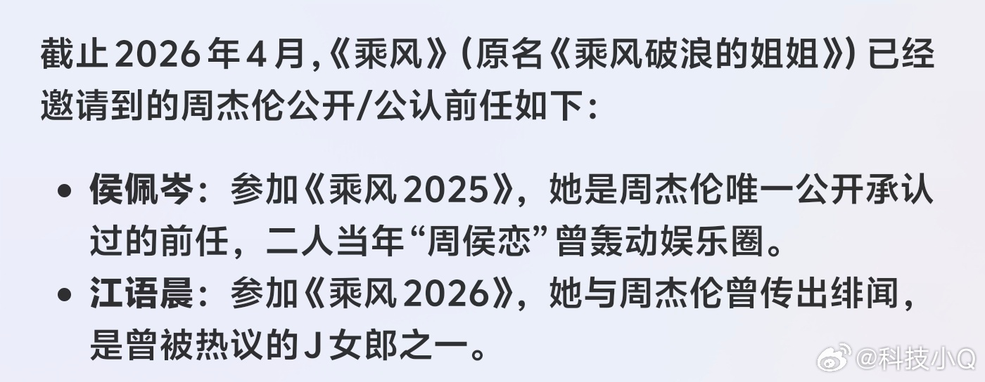 乘风每年邀请一个周杰伦前任应该只有侯佩岑是唯一一个承认的前女友吧?