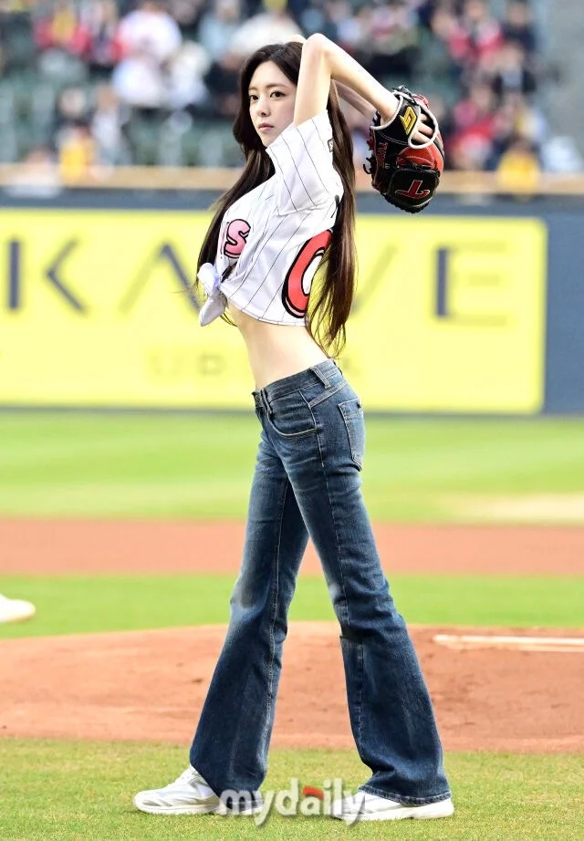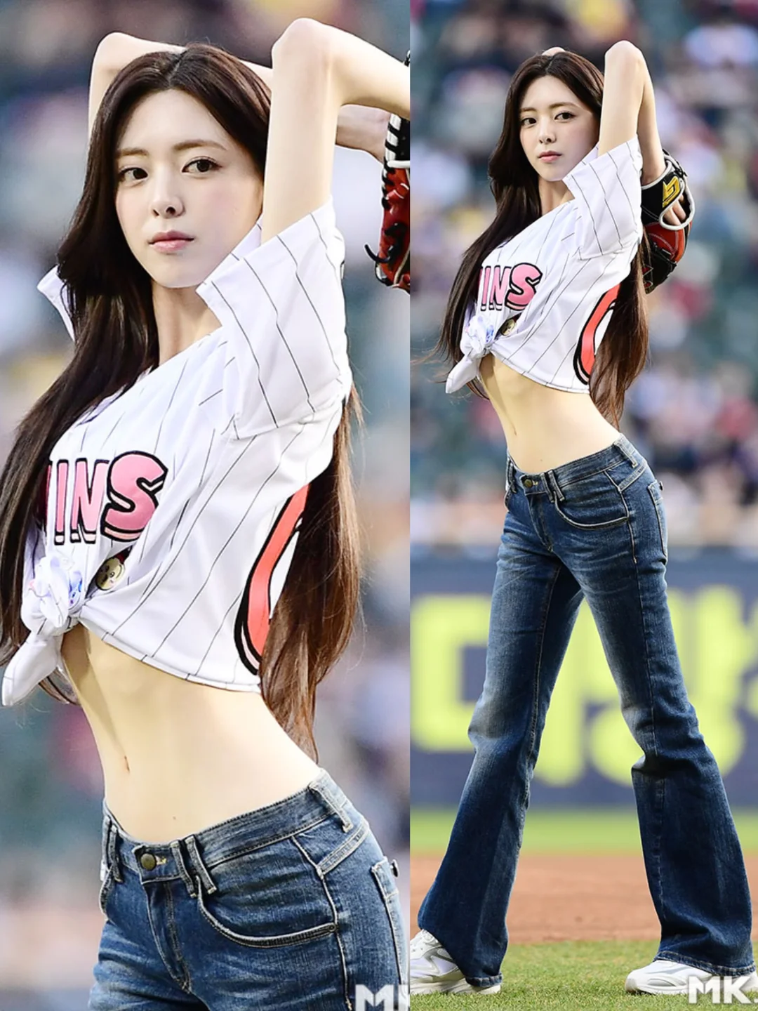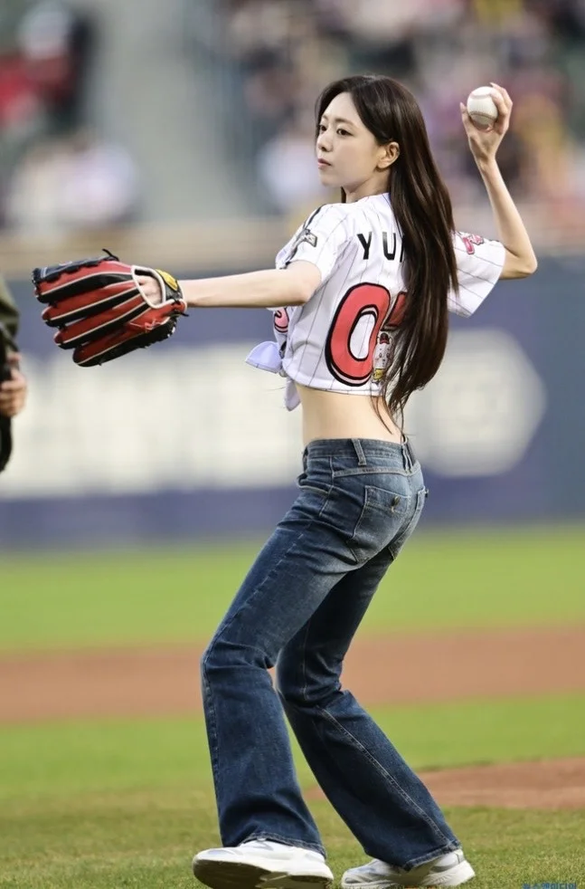 Yuna 今日开球穿搭,简单的球衣搭配牛仔裤运动鞋,大美女的好身材,真的养眼!
