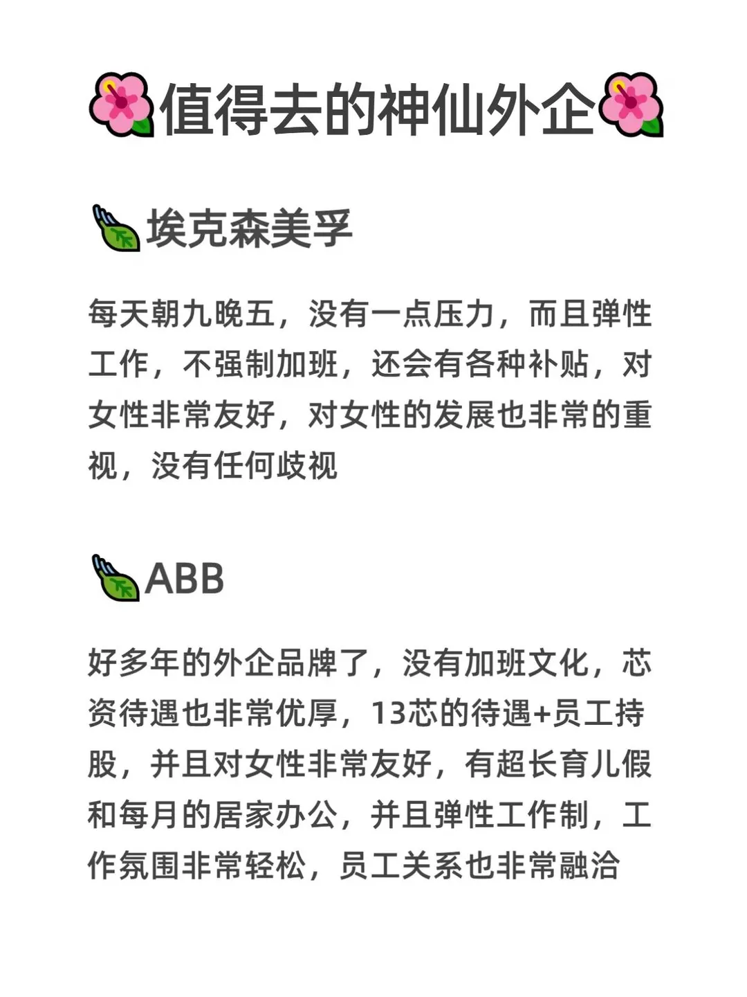 深圳这座以科创实力和都市发展势能出圈的城市,优质职场沃土的口碑早已打响 ~ 在深圳藏着不少低调有实力的宝藏外企,装满了打工人向往的理想职场日常[偷笑R] ~ 💗真心建议想找好工作的宝子冲深圳外企[害羞R] ✊🏻晋升通道透明,[自拍R]不搞歧视、不卡资历,不内卷 ✊🏻弹性打卡、灵活居家办公是日常标配,轻松拿捏WLB[赞R] ~ 我整理好了外企的信息表,[害羞R]希望帮助宝子们早日拿到心仪的offer~ ~