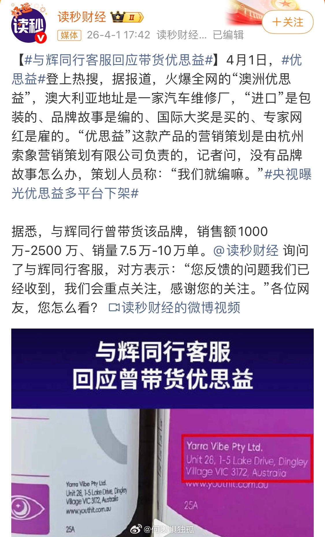 与辉同行卖优思益销售额超千万 也不是第一次了,虽然我早就下过定论