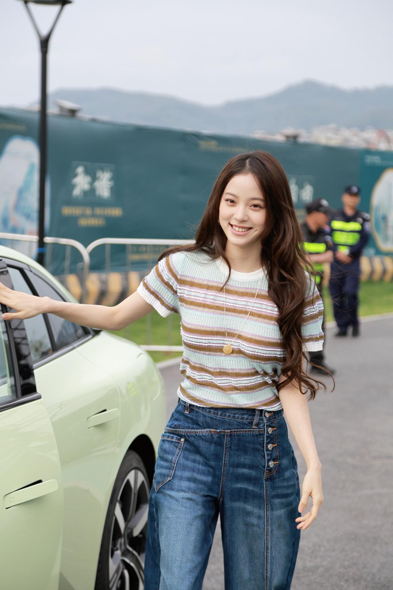 欧阳娜娜开着新款MONA M03冒雨来参加发布会,明星也蛮敬业[赞]