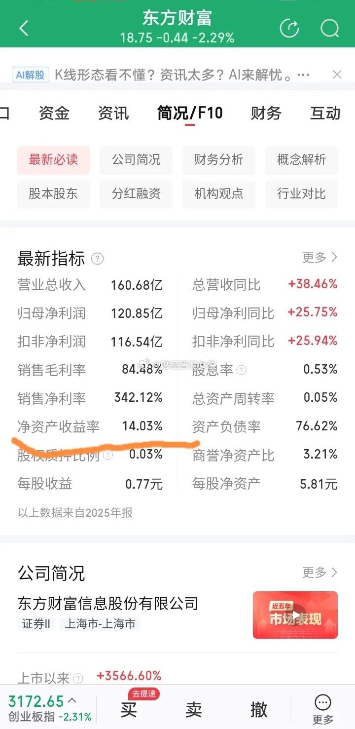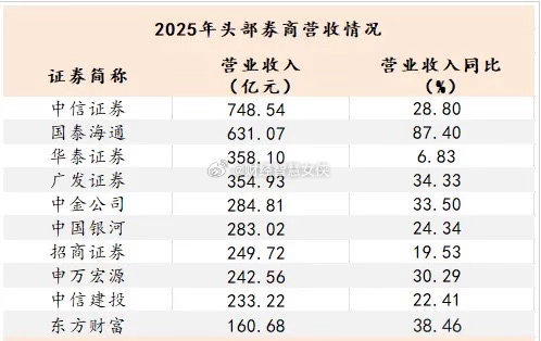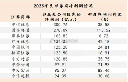 头部券商股2025年年报基本已披露完毕。头部券商股中最赚钱的是哪一家?赚钱增速最快的是哪一家?最会赚钱的是那一家?中信证券主营业务收入748.54亿元,归属净利润300.76亿元,继续稳居头部券商股最能赚钱王者地位。国泰海通主营业务收入631.07亿元,同比增长87.40%,归属净利润278.09亿元,同比增长113.52%,虽屈居头部券商股第二位,但营收和净利润增速居头部券商股增速第一名。头部券商股最能赚钱的是中信证券,但最会赚钱的则是东方财富,主营业务收入160亿元,归属净利润达到了120亿元,净资产收益率(Roe)14.03%,比中信证券的10.59%高了近3.44个百分点。