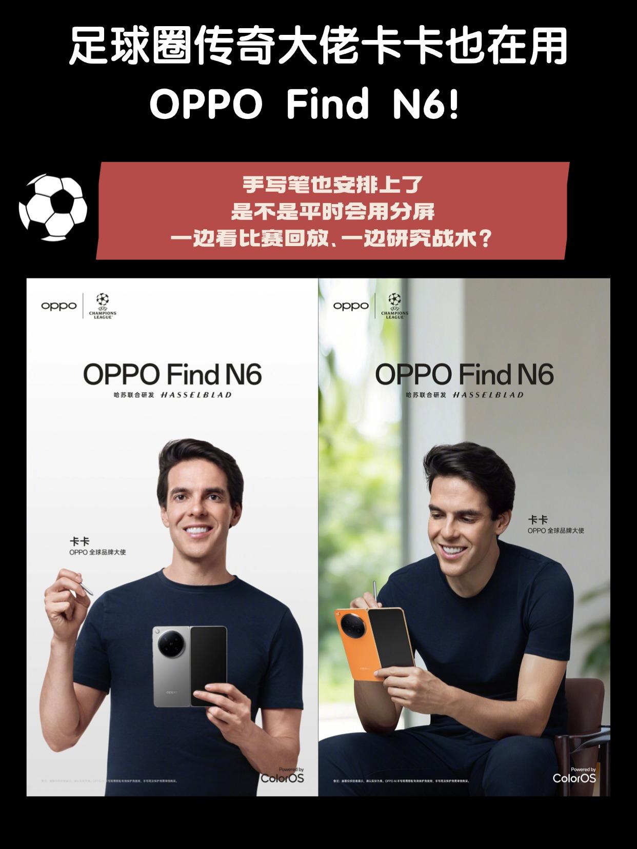 老球迷泪目了!卡卡二十年不老神颜呀 最近世界杯 48 强全出炉,没想到亚洲创纪录,有9队参赛。作为老球迷,我今天看到卡卡作为 OPPO 全球品牌大使,来了一波联动! 卡卡现在是教练,今年的世界杯也可能会亮相,那看看用这个折叠屏是不是会分屏使用呢?一边看比赛回放、一边研究战术。而且说实话,之前就在娱乐圈看到不少明星换了Find N6,这回是又轮到体育圈了呀! - 刚好我也入手了Find N6,这个折叠屏屏幕很大,又几乎看不到折痕,在上面看球赛很爽,而且啊,我还用手写笔为卡卡画了些图画,只需用笔圈一下,然后可以选择多款风格,当然还可以自己徒手画,然后让AI生成,感觉非常有趣,仿佛那个传奇卡卡又在球场上跑动了! 世界杯 足球 卡卡 OPPO OPPOFindN6 足球比赛