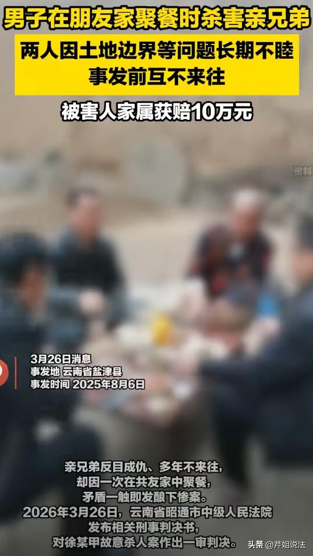 云南昭通,男子与弟弟结仇,多年来互不来往,同村村民请吃饭,男子和弟弟意外碰见了,两人吵了一架,弟弟故意激怒他,还率先动手。结果男子被激怒,拿出一把尖刀扎中弟弟心脏,弟弟因此离世。 徐大和徐二是亲兄弟,但是兄弟二人一点都不和睦,反而断绝来往,成了仇人。兄弟二人之间的纠纷,要从几十年前说起。 几十年前,徐大和徐二多年各自成家,按理说,一母同胞的兄弟俩,关系应该非常亲近才是,可二人却因为一些小事结了仇。 原来,二人成家后就分家了,但是两人都觉得对方占了便宜,自己吃了亏,心里对彼此产生了不满。 后来分地的时候,徐大和徐二家的地挨着,中间只有一条很窄的地边。 半尺宽的土地,长不出多少粮食,可兄弟俩之前就闹的不愉快,加上两人都不是心胸宽阔的人,这个仇一直记在心里没解开。 两人的地分在一起后,徐大总觉得徐二偷偷挖了地界,占了自己的地,徐二觉得徐大倒打一耙,明明是他做了坏事。 因为这半尺宽的地,两家人三天两头吵架,到最后打了起来,兄弟两个打的头破血流,村里多次出面调解都不管用。 后来兄弟俩又遇到了土地征收,二人再次发生矛盾,吵架成了家常便饭,一言不合还会打一架。 就这样,兄弟情分吵没了,两家成了不共戴天的仇人。 从那以后,哪怕迎面碰上了,两人也像陌生人一样互不说话,甚至气不顺的时候还会指桑骂槐骂一通。 2025年8月6日晚上,村民孙某请客吃饭,徐大在邀请之列。 晚上,孙某整治了一桌宴席,一群人在他家美美的喝了一顿。 徐二和孙某的关系也很好,孙某知道他们兄弟二人不和,因此只叫了徐大,没叫徐二。 可没想到的是,晚上8点左右,徐二酒后路过孙某家,也加入了酒席。 酒过三巡,徐大和徐二兄弟俩又因为旧事吵了起来,徐二毫不念及兄弟之情,故意说气话气大哥,甚至率先动了手。 徐大被他一激,多年的怨恨涌上心头,产生了杀掉他的念头。这个念头一冒出来,就像草一样疯长。 徐大努力压制,可徐二仍在喋喋不休,不停挑衅,终于徐大再也控制不住了,转身走到孙某家的洗菜池边,随手拿起一把单刃刀捅向了徐二的脖子和心口。 现场众人都吓傻了,徐大将徐二拎到孙某门口扔在地上。 反应过来的孙某赶紧打了110,民警到场后将等在现场的徐大控制了起来,并将徐二送去救治。 可惜的是,案发当天,徐二就因颈部静脉和心脏破裂大出血离世了。 案发后,徐大的儿子非常着急,主动赔偿了徐二家属10万元,承担了徐二的医疗费及丧葬费等费用,并取得了他们的谅解。 徐大被逮捕后,对自己杀害徐二的事供认不讳,但辩解称,是徐二故意激怒他,还率先动的手。 可是,不管徐大怎么辩解,他的行为都构成了故意杀 人罪。 《刑法》第二百三十二条规定,故意杀 人的,处死刑、无期徒刑或者十年以上有期徒刑;情节较轻的,处三年以上十年以下有期徒刑。 徐大与徐二本来是亲兄弟,却因为土地划分、征收等纠纷结仇多年。 孙某请吃饭的酒席上,徐二酒后挑衅行为,让徐大产生了杀 害徐二的故意。 在这种故意的支配下,徐大实施了伤害行为,导致徐二离世,徐大的行为完全符合故意杀 人罪的构成要件。 徐大辩解称,徐二故意激怒他且率先动手,但徐二的挑事行为,并不能改变徐大故意杀 人的性质。 在法律上,即使存在对方挑衅的情节,也不能成为故意杀 人的合法理由。不过,这种挑衅行为可以作为量刑时的一个酌情考虑因素。 一审认为,徐二的行为对事情的发生起到了激化和推动作用,在此事中存在过错。徐二对损害的发生或和扩大有过错,可以适当减轻徐大的责任。 加上徐大的儿子主动赔偿,取得了徐二家属的谅解。根据司法解释,积极赔偿被害人经济损失并取得谅解的,可以从宽处罚。 最终,一审酌情对徐大从轻处罚,以故意杀 人罪判处徐大无期徒刑。