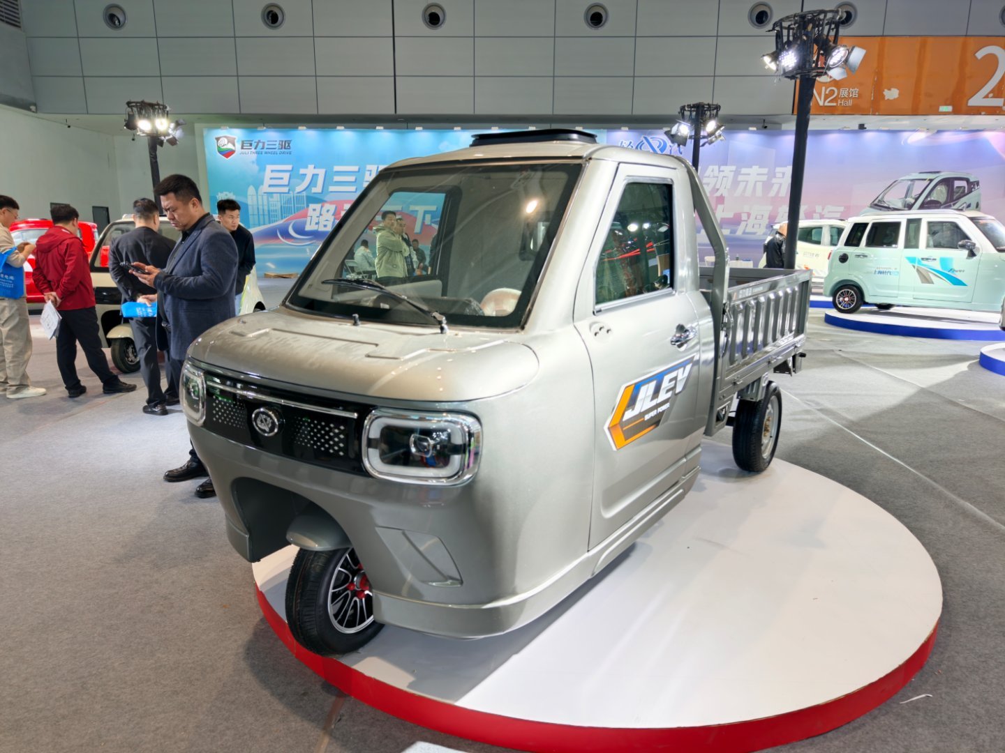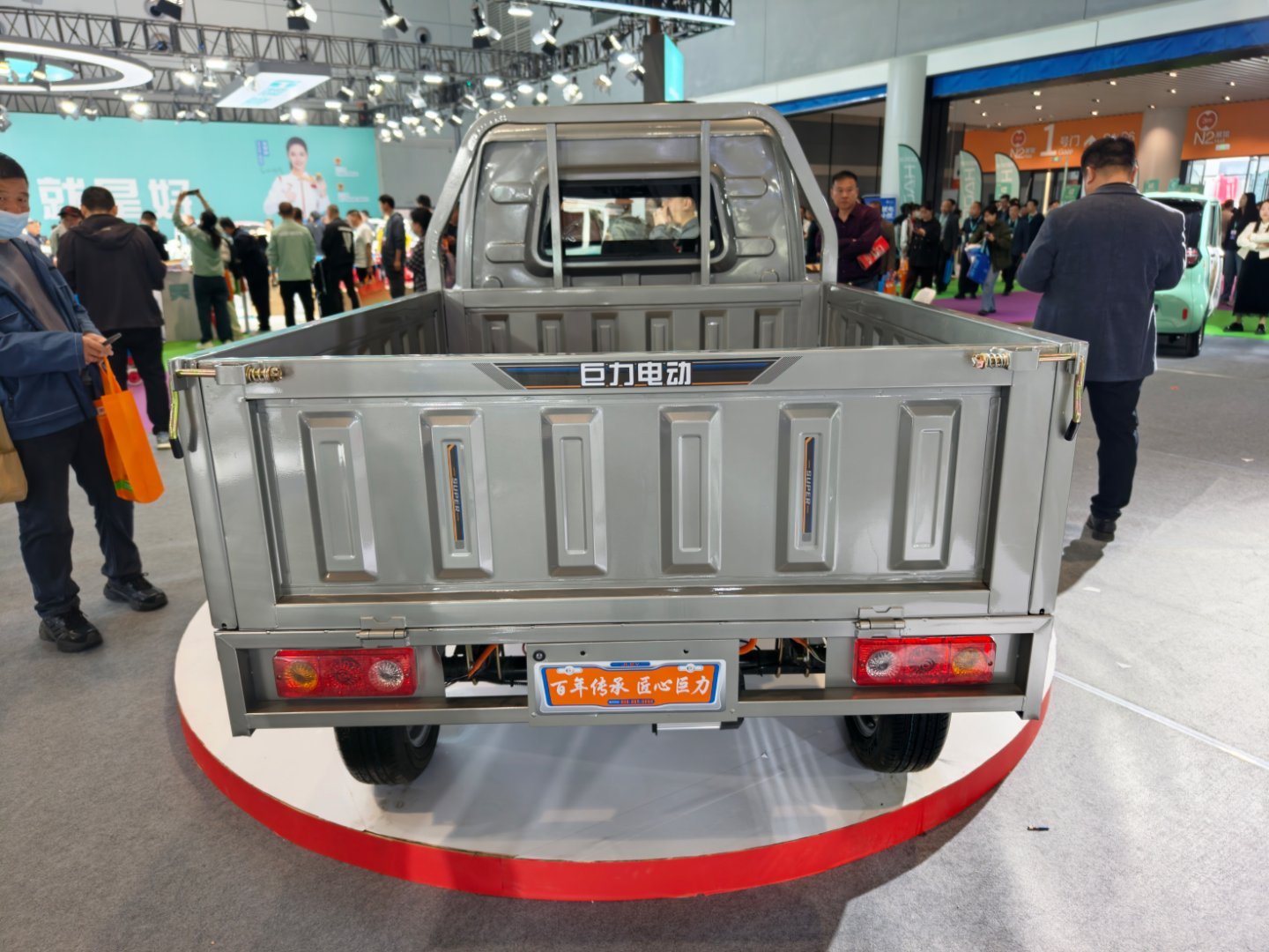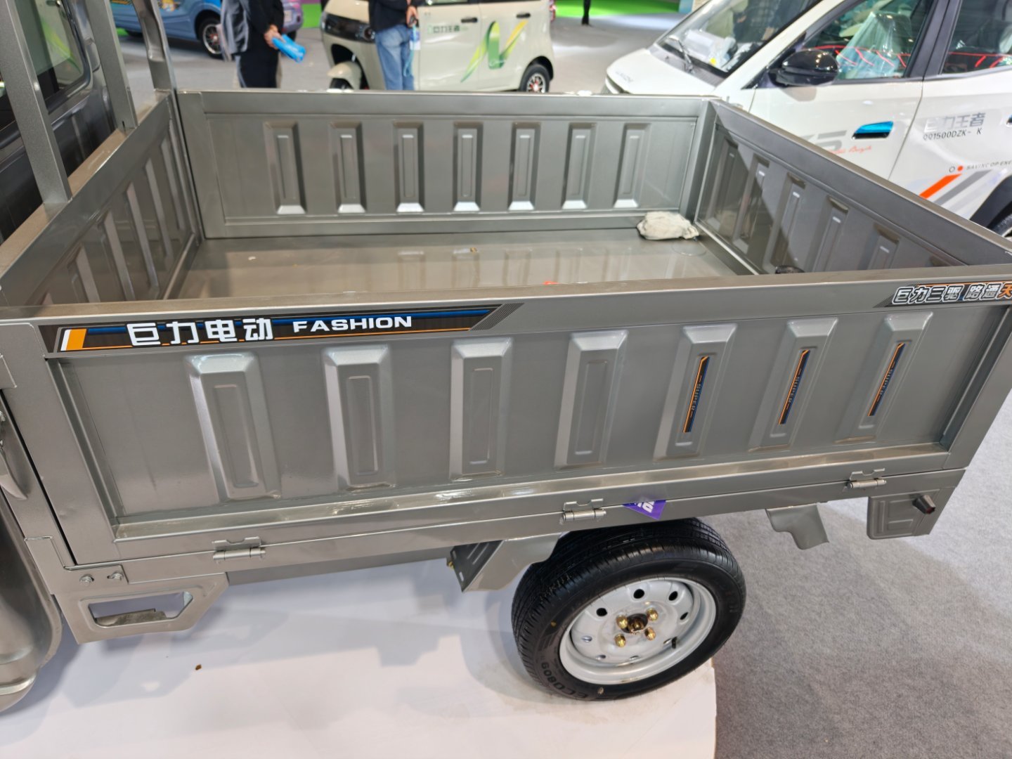 济南电动车展上面的三轮皮卡,这个车大概卖8000多块钱,但是不包含电池。它可以用6块100Ah的铅酸电池,或者200Ah的锂电池,基本上就跑个70公里左右。这个真的是乡村里面的生产类工具了。