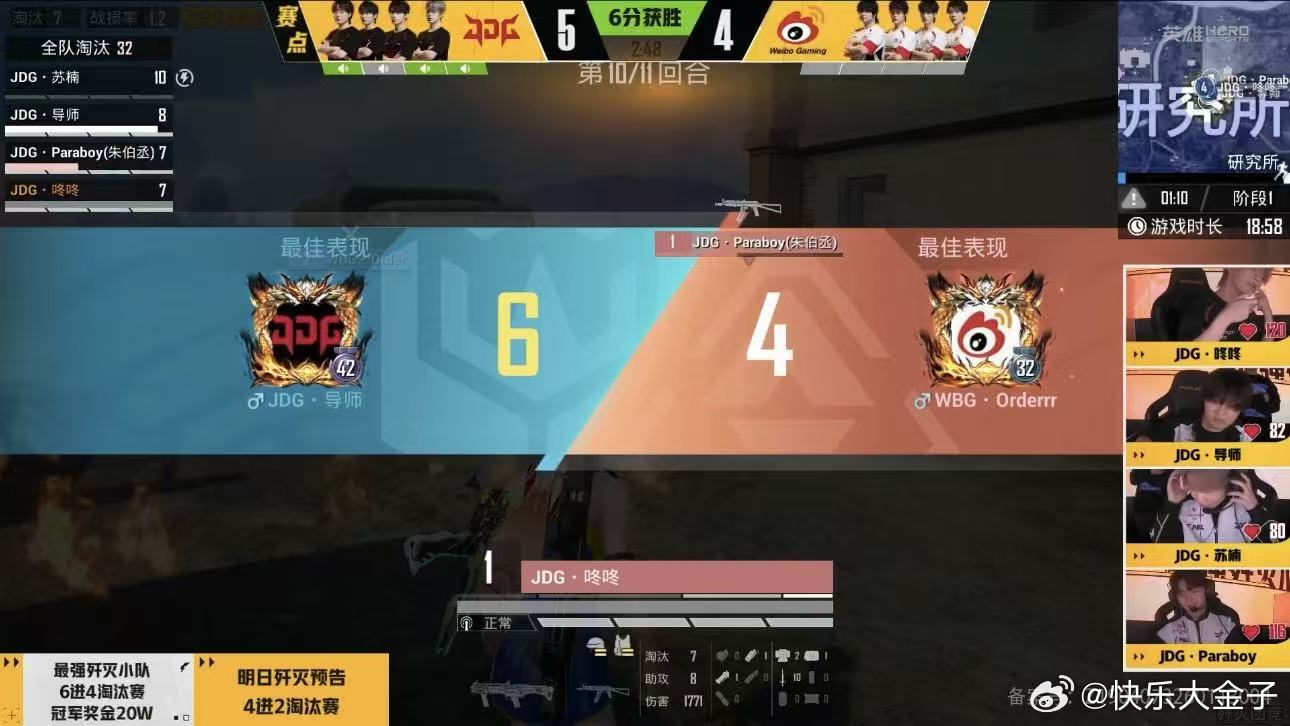 JDG11淘汰满编吃鸡 JDG满编吃鸡,单局11淘汰,稳稳进周决。