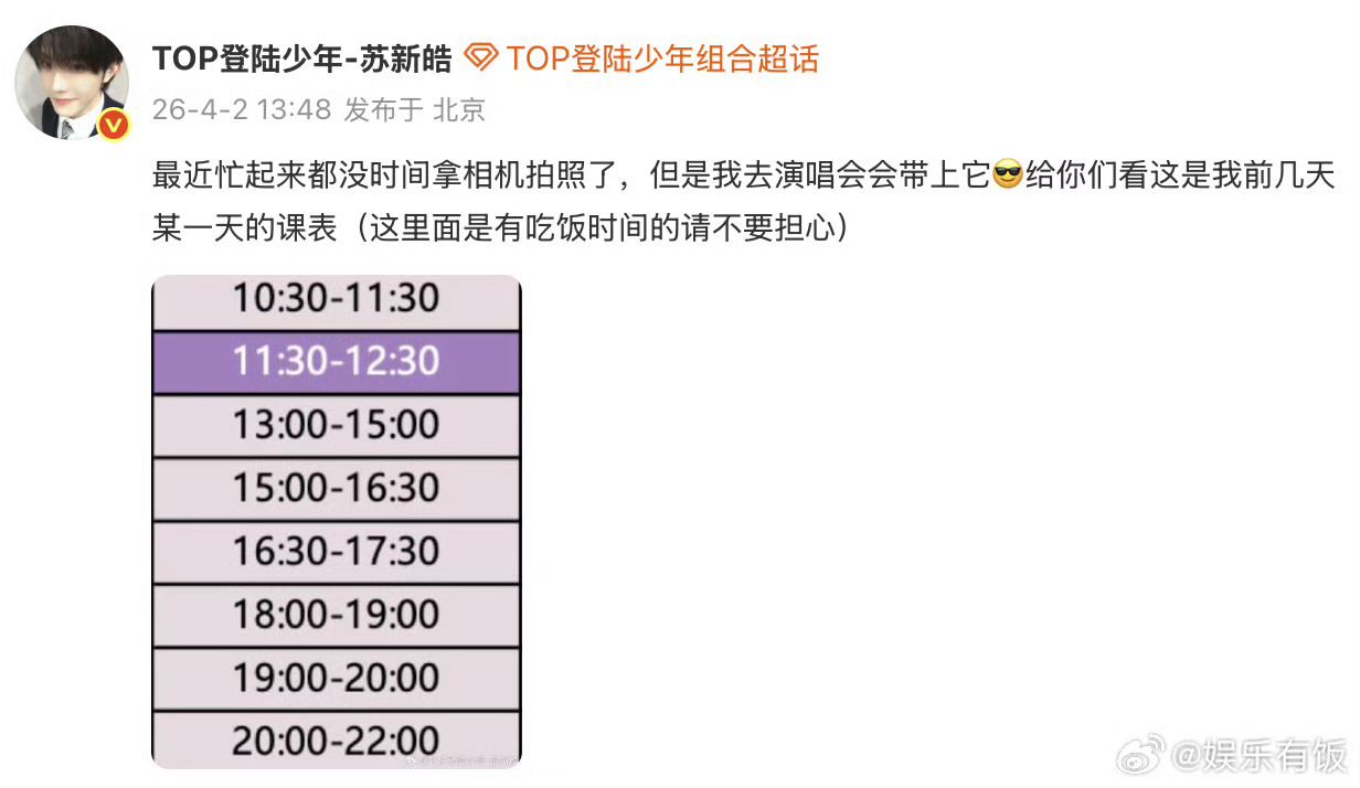 低精力人看完苏新皓课表都力竭了真的会被苏新皓的课表吓到!满满当当从早排到晚,光是看着都觉得累了低电量人直接原地力竭,苏新皓也太自律太拼了吧