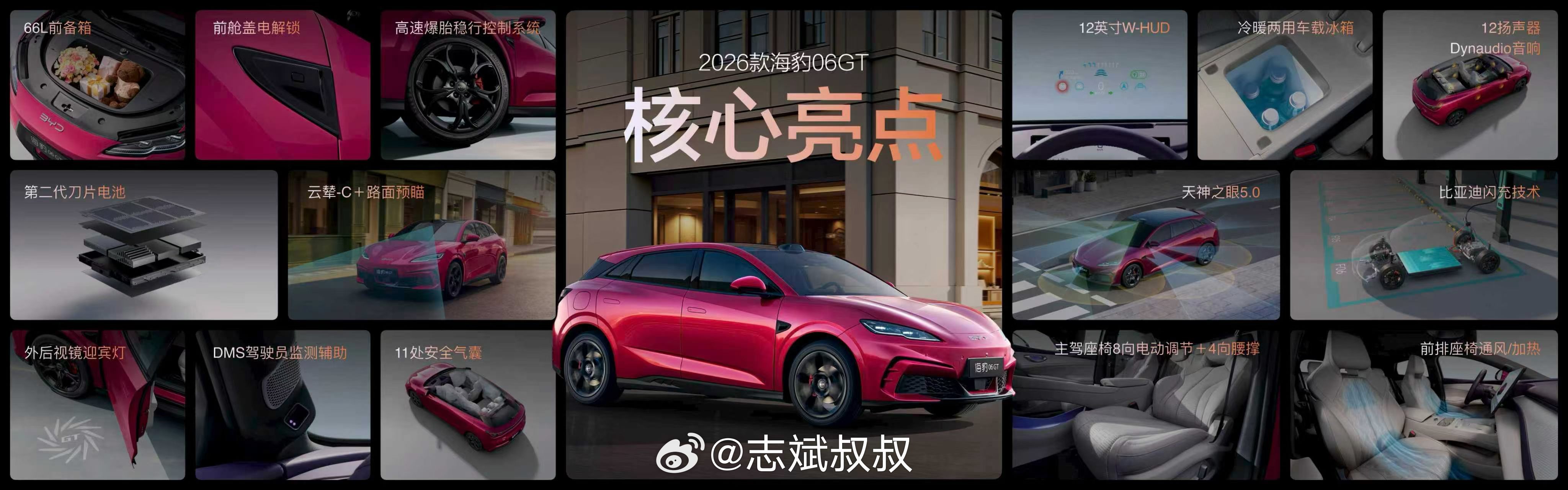 今天下午比亚迪海洋网6系双豹齐发,通通焕新上市。2026款海豹06GT,12.8