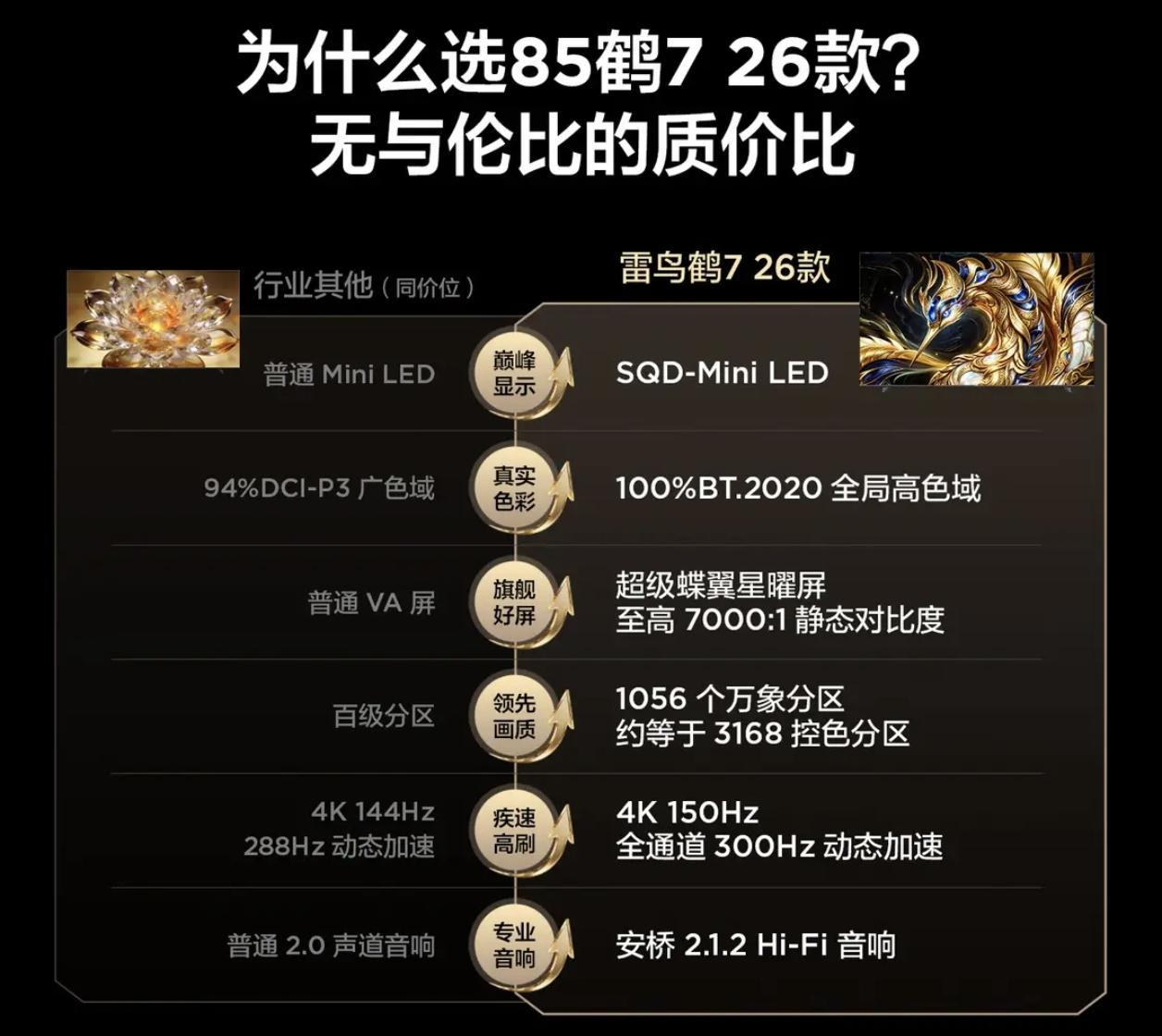 说实话,以前看电视总觉得差点意思。家里那台老电视,看久了就很憋屈,白天反光得像照镜子,得拉窗帘。晚上看个暗场电影,黑的地方灰蒙蒙一片,亮的地方又刺眼,颜色也怪,人脸有时偏红有时偏绿,看球赛草地颜色都不正。最烦的是它厚得像块砖,挂在墙上突出老大一截。这些“差一点”,凑一起就成了糟糕的体验。 换了雷鸟85鹤7 26款,这些毛病一下子治好了。它用的这个SQD技术,说白了就是让画面更“干净”更“真”。颜色特别正,看美食节目里的红烧肉,油亮亮红润润,不会红得发假;看自然纪录片,树叶的翠绿、湖水的湛蓝,层次分明,不会糊成一团。因为它分区多,控光特精细,晚上关灯看《权利的游戏》那种暗黑场景,黑袍子的纹理、阴影里的细节都能看清,但火光、烛光又亮得耀眼,不晕开。最让我惊喜的是亮度,白天客厅不拉帘子,画面依然通透亮堂,看HDR电影时阳光、爆炸这些高光场景,是真的有“哇”一下的冲击感。而且机身做得薄,贴墙挂几乎没缝隙,好看多了。 可能你会说,这些高端画质别的牌子也有啊。但鹤7狠就狠在,它把这些旗舰级的体验,价格打到了普通家庭够得着的位置。你不用为那些花里胡哨用不上的功能买单,它把钱都花在了刀刃上——就是让你看得爽。系统没开机广告,桌面还能自己随便拖拽定制,家里老人小孩用着都顺手。如果你受够了老电视的各种“将就”,想花实在钱买个画质、声音、外观都一步到位的,85鹤7 26款就是这个价位里,那个让你觉得“真值”的选择。 关注+转发,抽送粉丝一个可折叠手机支架,4月6日开奖,快参与起来[机智]抽奖详情