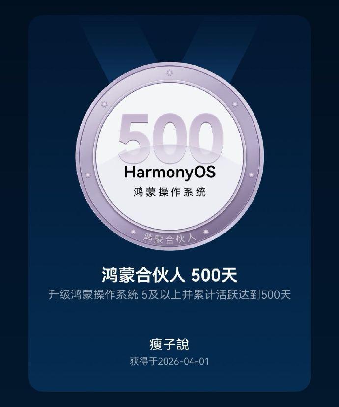 鸿蒙合伙人500天达成。 虽然没有贡献应用开发,但也是一路“白嫖”各位开发者的辛勤劳动成果了。 从一开始的尝鲜内测申请,到这会的鸿蒙6,一直在见证它的成长速度,确实很惊人,未来更精彩