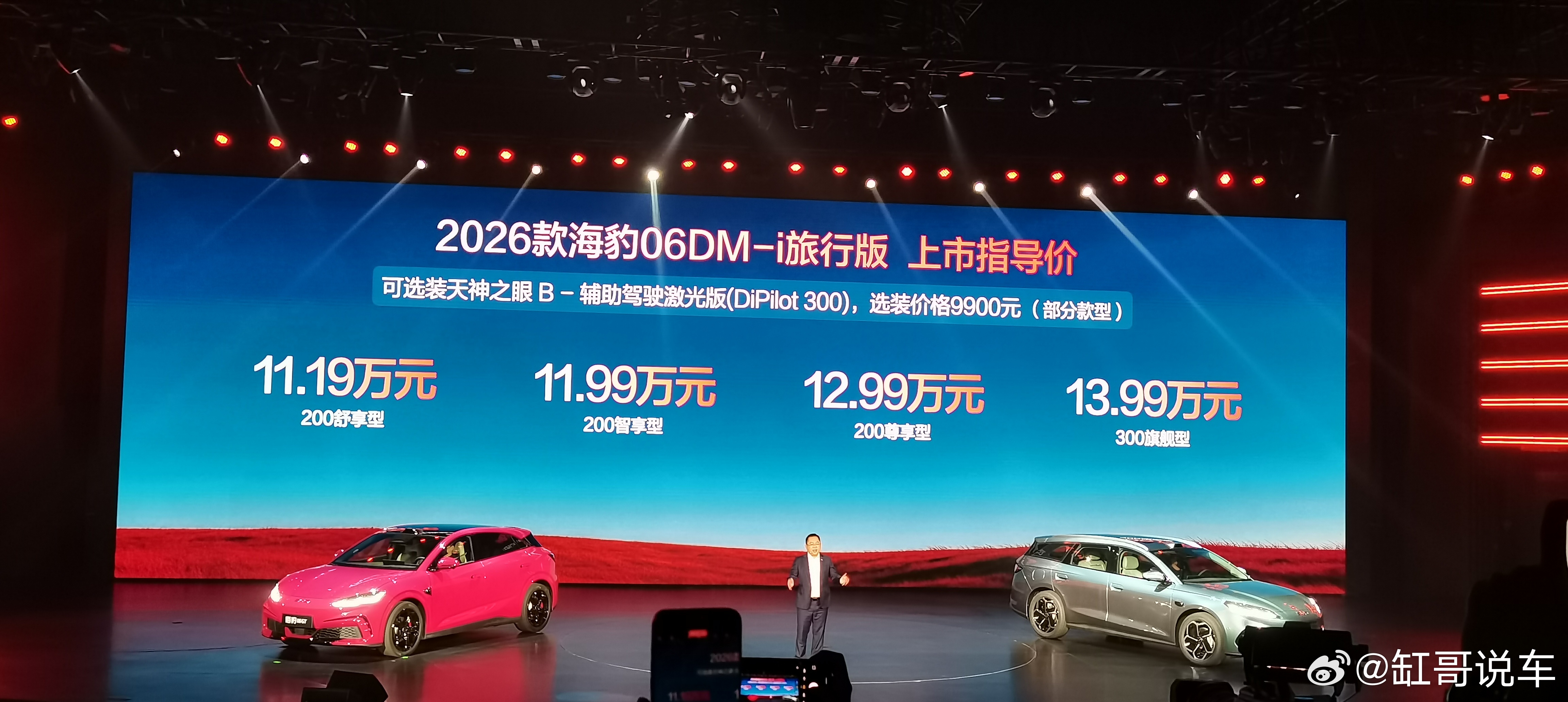 双豹齐发 全维进阶!2026款海豹06GT 售价12.89万元-16.99万元2026款海豹06DM-i旅行版 售价11.19万元-13.99万元