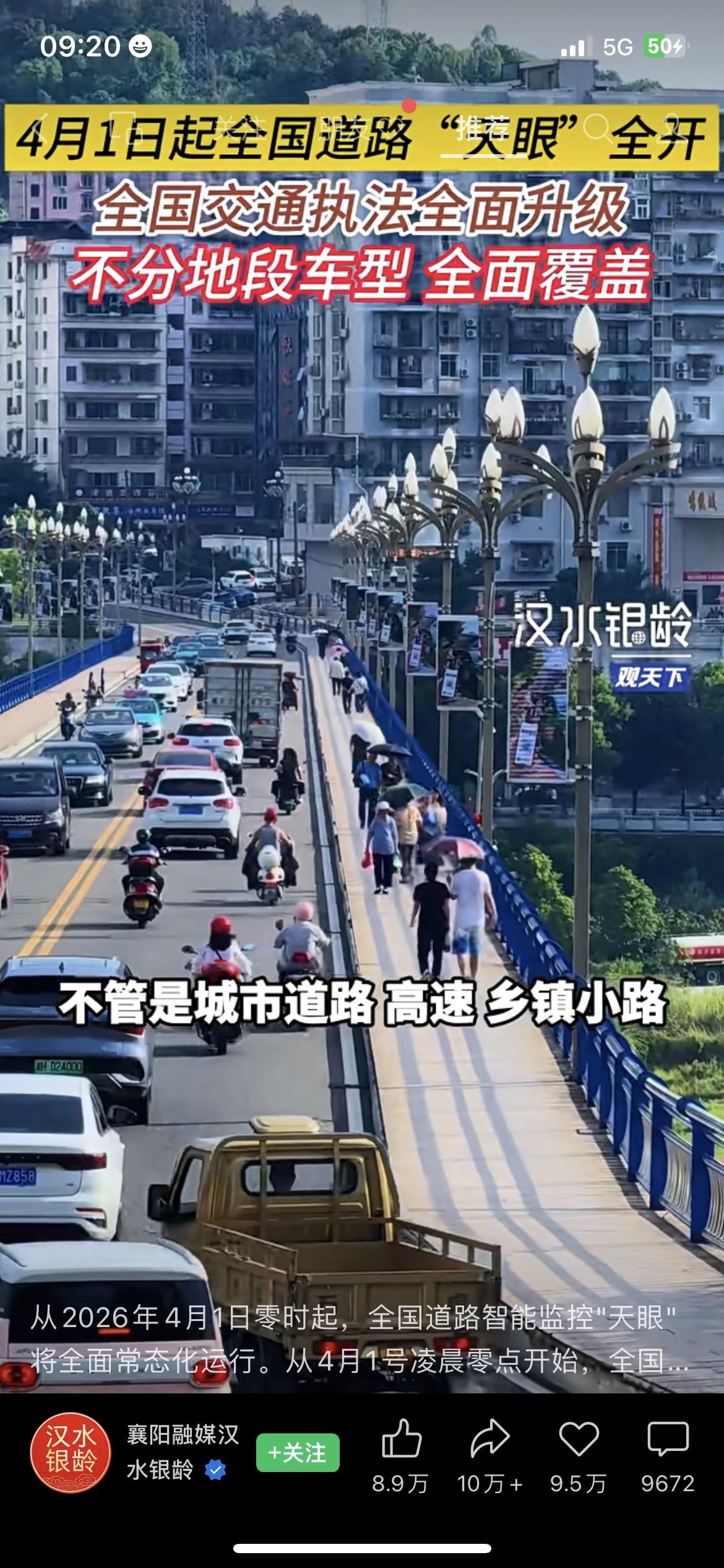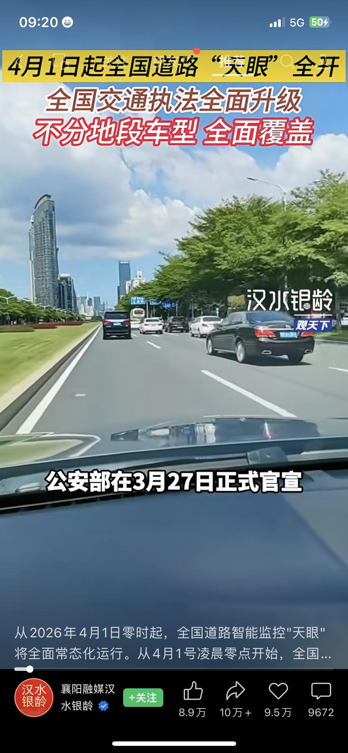 4月1日全国“天眼”全覆盖!交通违法一抓一个准! 全国车主注意!4月1日起,全国道路智能“天眼”系统常态化运行,24小时AI智能抓拍,交通违法无处遁形! “天眼”覆盖所有道路,严查滥用远光灯、车窗抛物、不系安全带、闯红灯等陋习,识别精准、自动处罚,无任何漏洞。以往心存侥幸的小违章,如今都会被拍罚款扣分。开车务必遵守交规,文明驾驶,守护自身与他人安全! 交通天眼 4月1日新规 车主必看 交通违法