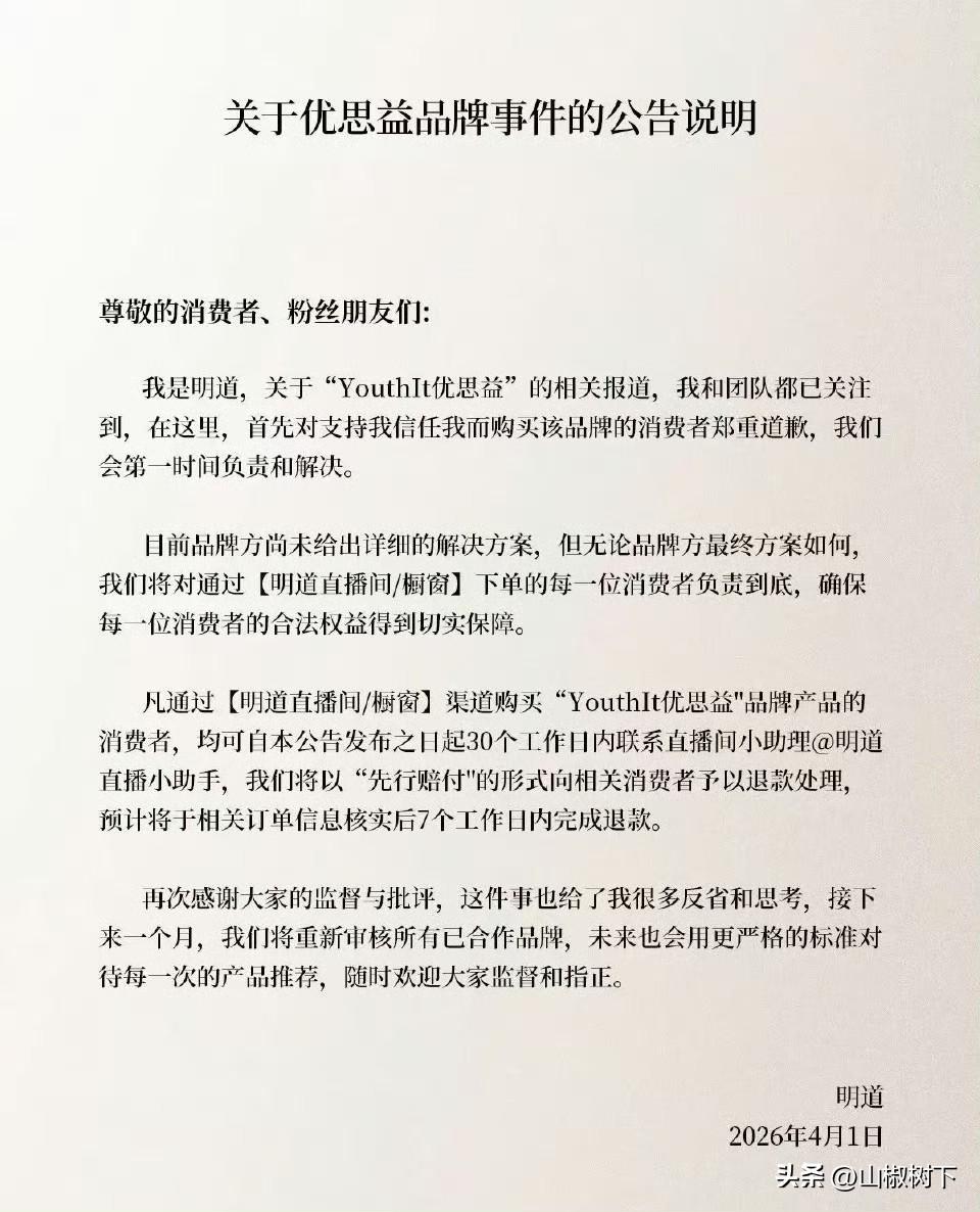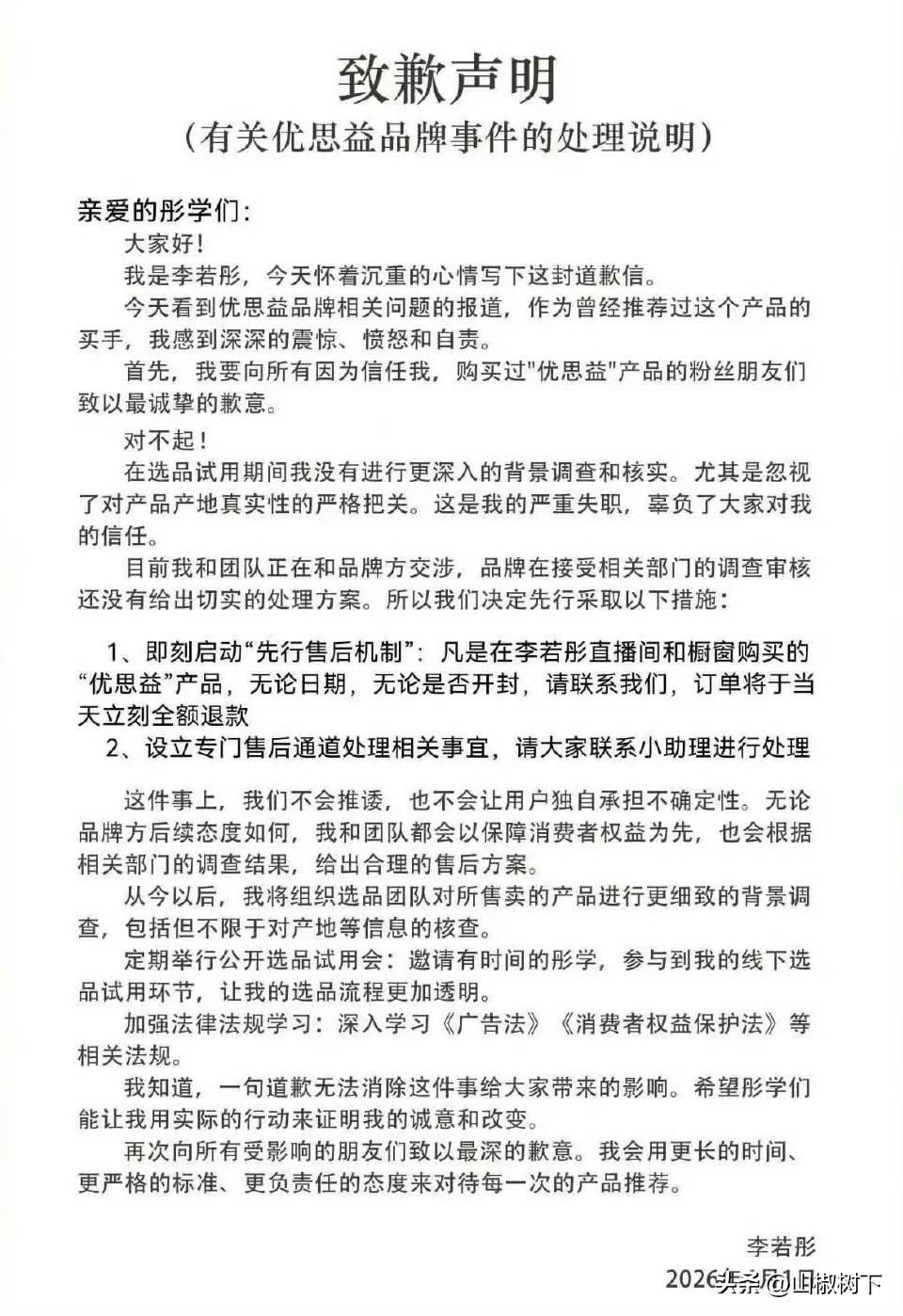 明星带货又翻车了,4月1号,央视曝光优思益假洋牌保健品骗局,产品其实是国内代工的,却伪装澳洲进口,据公开资料显示,赵露思、曾舜晞曾先后担任优思益普通食品代言人,伊能静、吴昕、章小蕙、李若彤、明道、张静初、与辉同行等明星网红则为该品牌直播带货。 目前李若彤、章小蕙、伊能静、明道等多位明星承诺退款,止与辉同行目前还没有发布处理结果,此事充分说明,明星网红为了赚钱是不会去对产品溯源的,直播间都是睁眼说瞎话,受害的永远都是消费者,退款还是简单了,售假应该假一罚十,不仅罚明星网红还要罚电商平台,一点监管作用都没有。