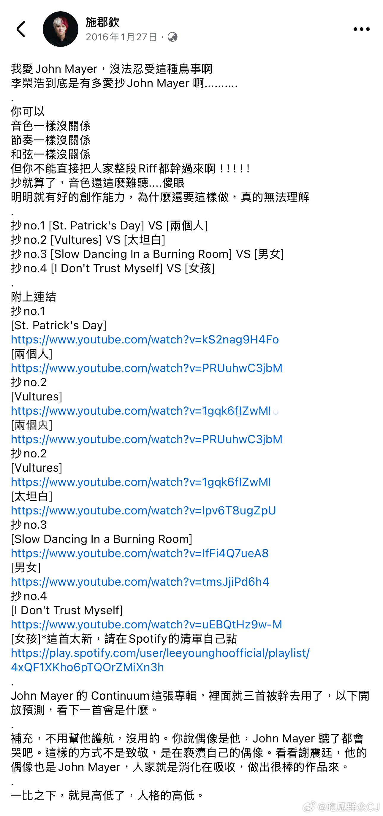 都是因为他就单依纯未获授权翻唱《李白》连发数条微博后,部分网友认为李荣浩自己也没有尊重他人的版权,并附上证据细数他这些年所面对的抄袭质疑。