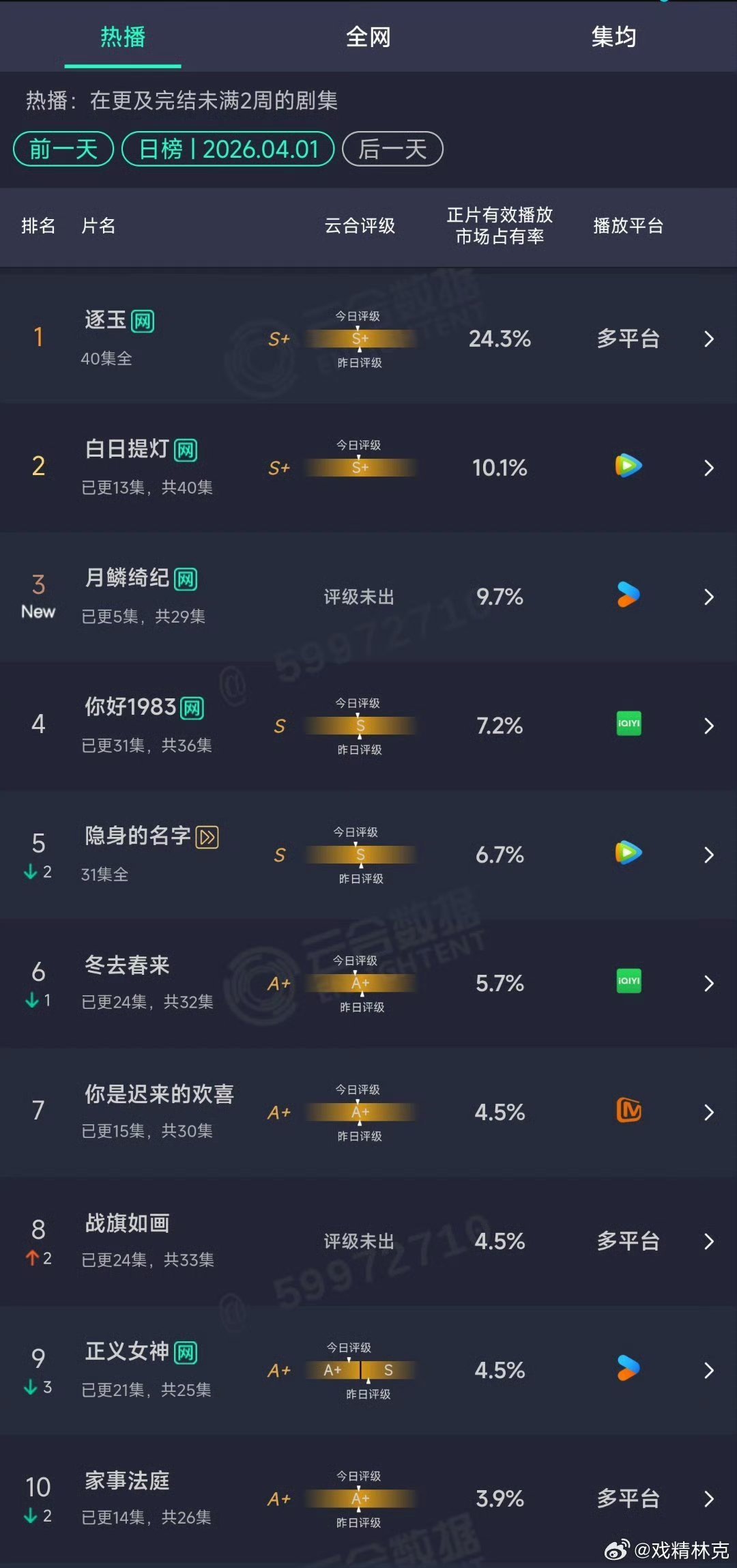 月鳞绮纪首播9.7%月鳞绮纪首播9.7%云合第三🥉好牛的成绩!!