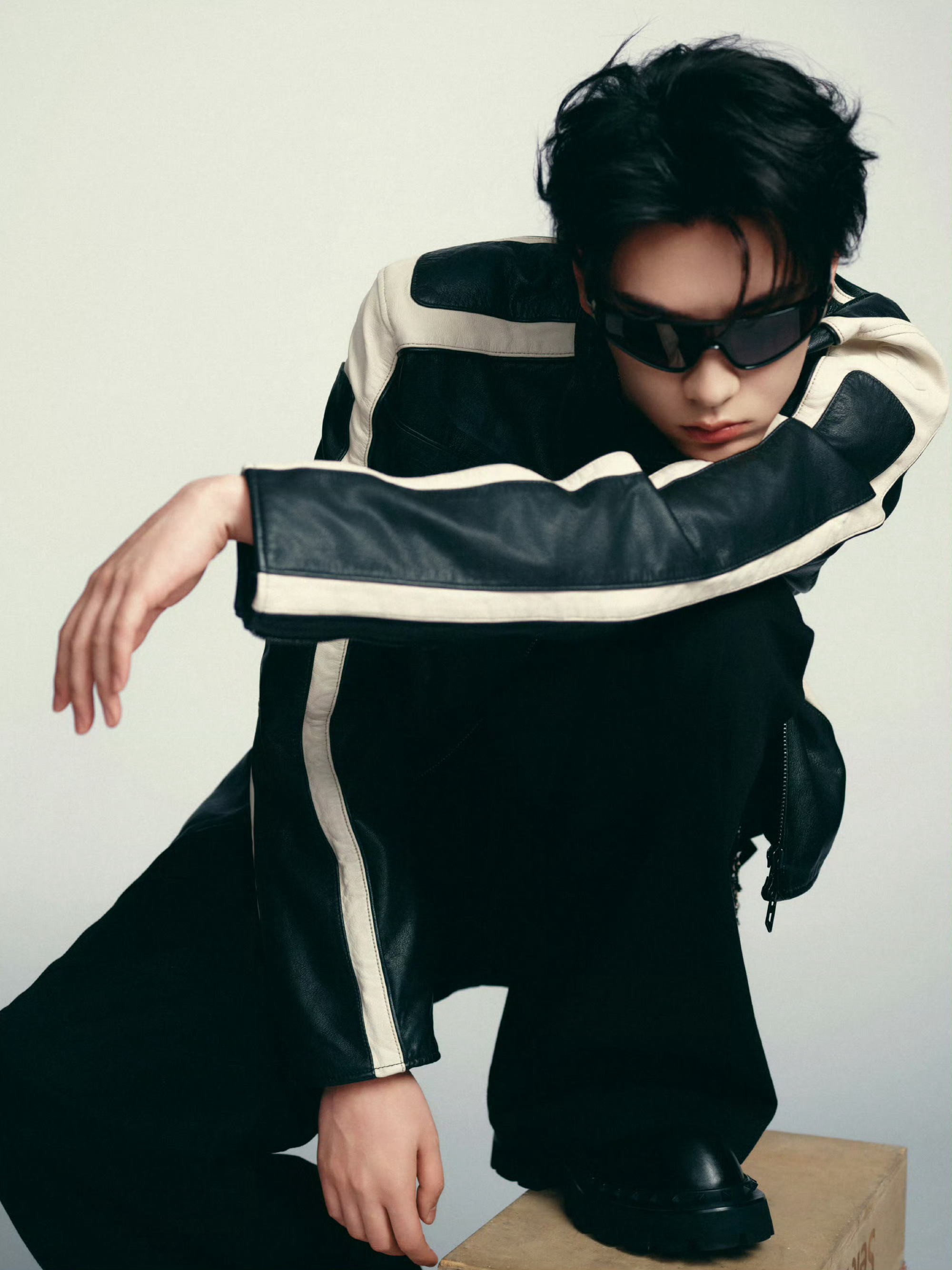 田栩宁黑白机车风皮衣田栩宁今晚直播出图黑白机车风皮衣酷飒boy好帅隐隐约约可见腹