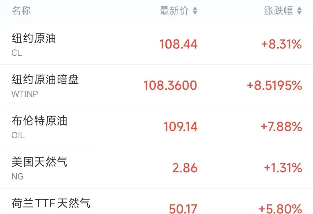 疯了,彻底疯了,能源价格疯狂暴涨,完全压不住了今天因为特朗普的一席讲话,能源价格彻底的疯狂了,截止目前布伦特原油上涨将近8%,天然气的价格也在上涨。可以说已经严重脱离了掌控,工业制造业成本疯狂增加。