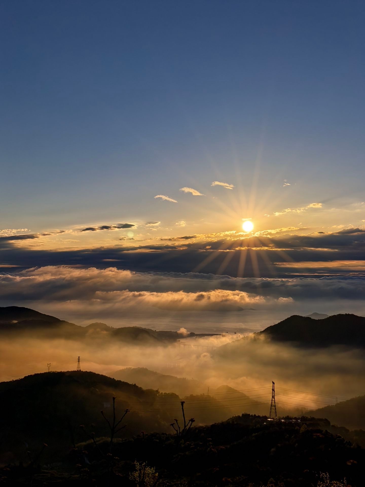 清晨的山雾还没散,我跟着风的脚步往高处走——等太阳跳出云层的刹那,漫山的光突然醒了!