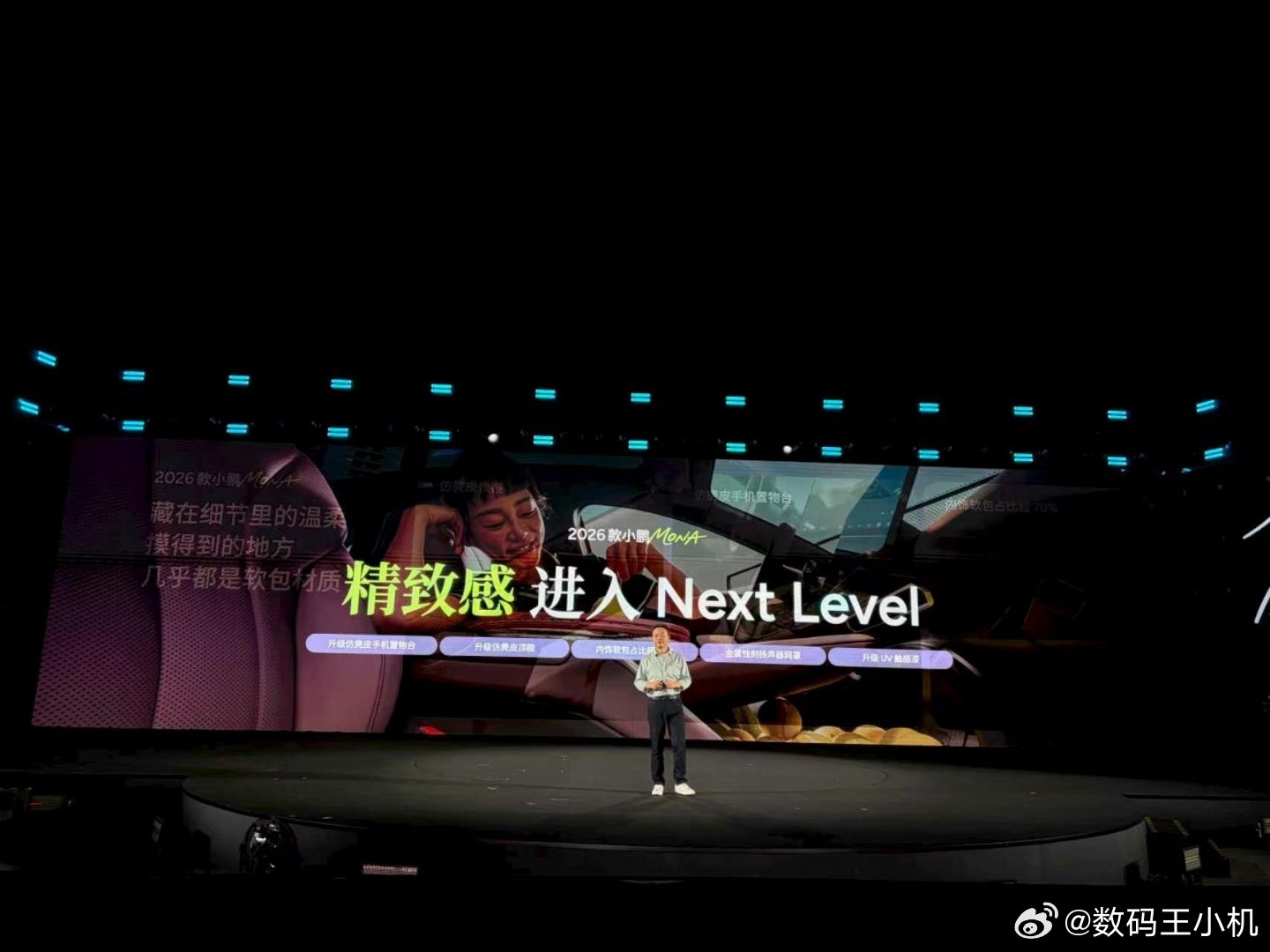 2026款小鹏MONA M03精致感达到Next Level,座舱内饰全面升级。新款小鹏MONA为年轻用户提供三款内饰色任选,拂晓紫、晨雾灰、夜幕灰,适配年轻人多元审美;超70%内饰软包覆盖,仿麂皮顶棚+手机置物台升级,触手可及皆是细腻质感;扬声器网罩全金属蚀刻工艺、中控台&门板开关UV触感漆,配件工艺全面对标豪华级;全新升级超20万级「大沙发」,更大、更软、更舒适,让舒适与精致伴随每一次出行。