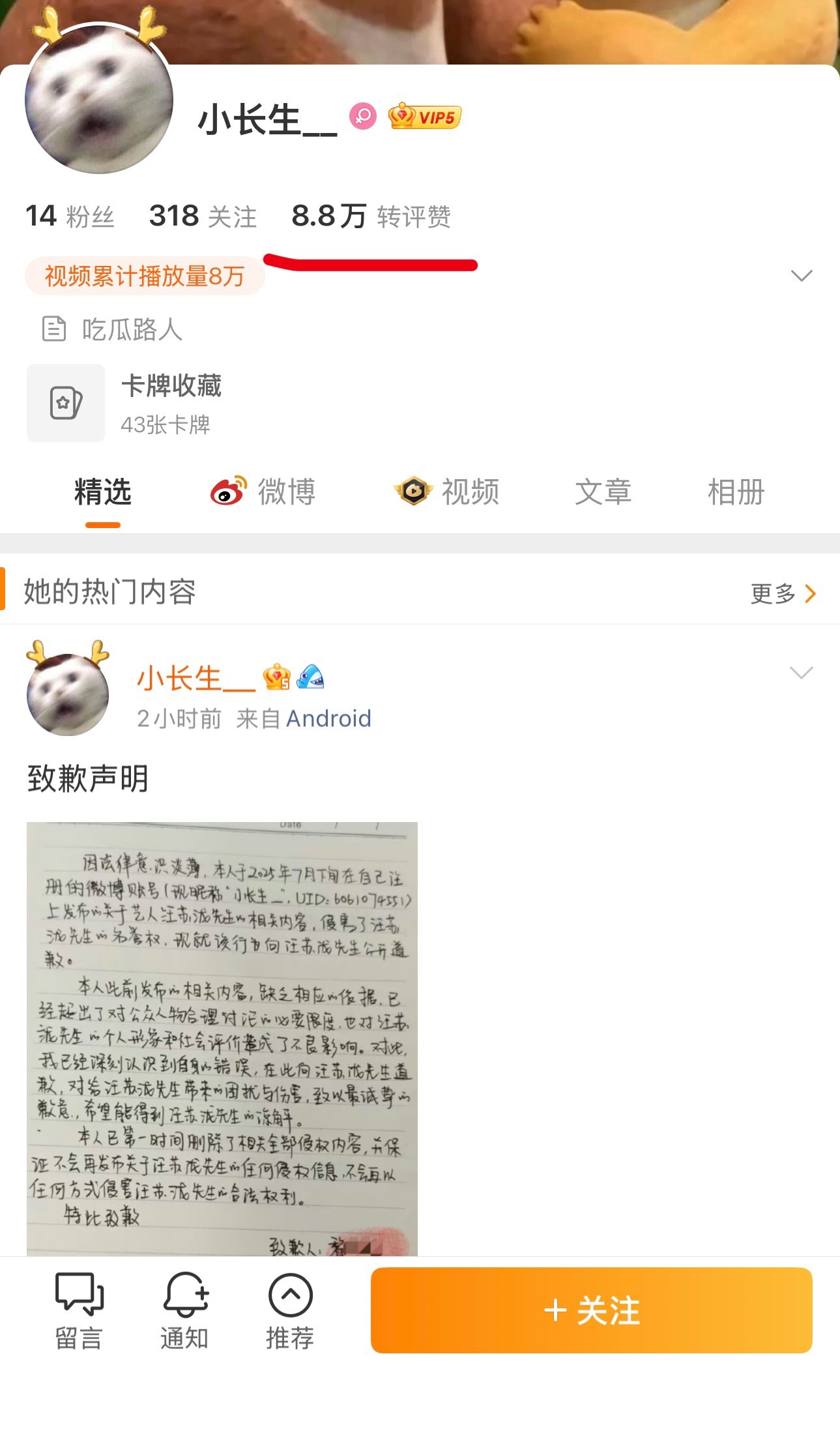 汪苏泷胜诉“汪苏泷先生决定将本次案件所获 5000 元赔偿款,连同自行出资的 95000 元善款,共计 100000 元全额捐赠至“中国妇女发展基金会母亲水窖”公益项目。”有人用女性主义为自己的侵权行为开脱,有人实打实地捐款支持妇女事业发展,这就是区别。被告人主页累计8.8万的转评赞……不敢想当时说了什么……网络不是法外之地,支持汪苏泷维权!!汪苏泷