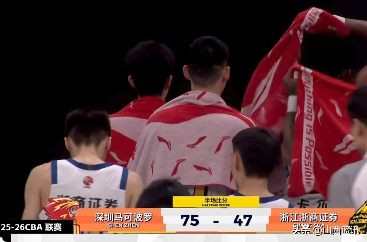 深圳男篮这是取代广东东阳光男篮代表广东男篮的节奏吗?今天晚上,深圳马可波罗男篮对排名第二的浙江浙商证券男篮动了外科手术!半场结束,深圳队爆砍75-47领先广厦队。在孙铭徽和布朗缺阵的情况下,深圳男篮对广厦男篮下了狠手,两节分别砍下35分和40分的高分。客观地讲,广厦队表现的也不是太差,首节22分,次节25分。只是深圳趁着广厦两大悍将不在军营,“趁你病、要你命”。深圳队外援史密斯出场14分钟高效贡献22分,三分球4中4;王浩然拿下20分并送出2次助攻。广厦队胡金秋没有了孙铭徽的喂饼,在内线打的非常挣扎,仅得到3分还有3次失误,正负值-12,防守端作用非常弱化。塔克拿到13分,桑普森拿下12分5篮板。全队半场比赛三分球12中3。广厦男篮缺少一个像深圳队贺希宁送出8次助攻串联全队的后卫。双方半场最大分差达28分。下半场比赛会发生什么情况呢?一会儿见!
