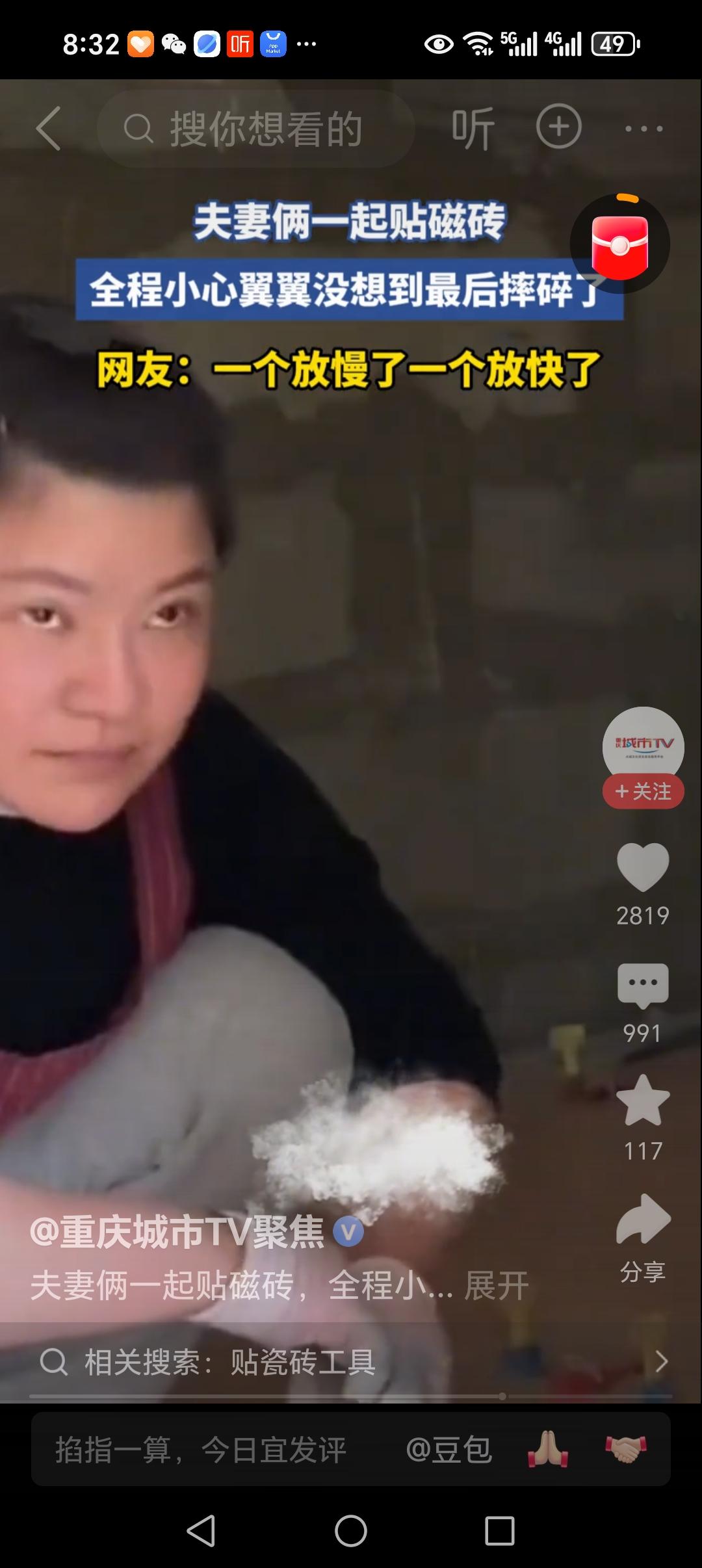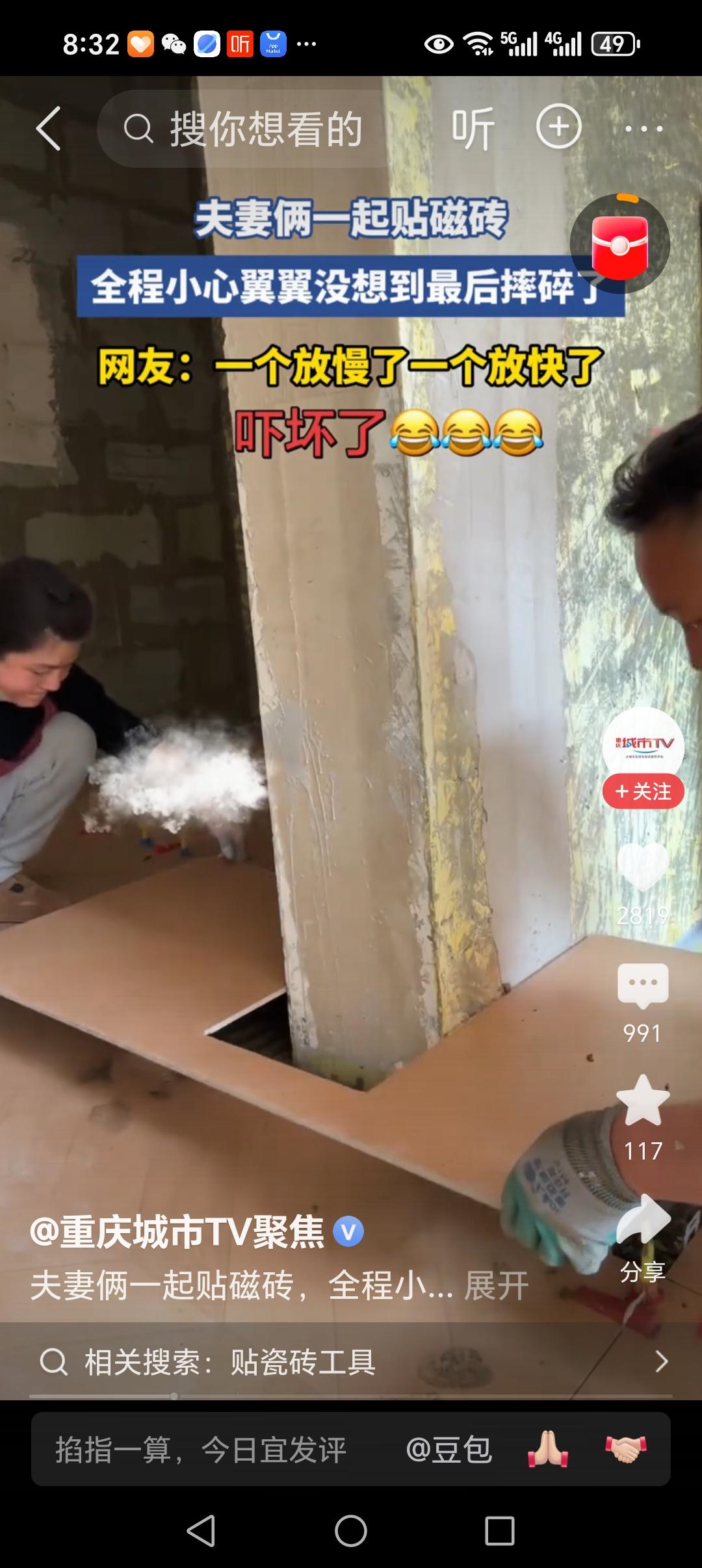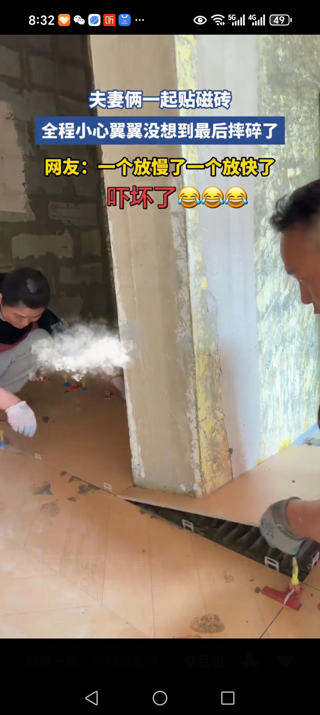 夫妻俩打工贴瓷砖,全程小心翼翼,可是,最后的结局“亮了”:居然摔碎了,让人看着心疼又无奈。 这是一对夫妻搭档,一起贴瓷砖打工赚钱养家。 视频中,房间其他的地方地板砖都已经贴好了,就是最后剩下一堵墙的地方,没有弄好。 瓷砖已经割好尺寸,就等着放上去就好。 夫妻俩小心翼翼的,一人一头,抬着瓷砖,慢慢的往下放。 可是,夫妻俩的速度没有掌握好。 妻子的速度有些慢,老公的速度有些快。 关键时刻,妻子那一头已经放下,老公那一头还差一大截。 这时候,那个最薄弱的地方,突然咔嚓一声,断开了。 断开的那一刹那,老公忽的站了起来,妻子的脸上满是愧疚之色。 网友说;女人当时害怕极了,女人最后的眼神很小心。 网友说:一看就知道,没干过活的,这种事,不能两个人干。 有网友说:豁口朝上,先把没口的一边着地,再往墙的方向倒,这样子碎的几率大大降低。 看到这妻子无助的眼神,让人看着心疼。 这老公会不会埋怨她呀? 如果是我,我会恶人先告状:磨磨蹭蹭的,你看,现在好了,都是你的错。 有一名网友说的让我心里温暖。 他说:要是我媳妇,我非抱着她亲两口安慰安慰她,看她那受惊的表情,就像一只惊恐的小鹿,心里害怕极了。 其实,这样子的贴瓷砖的夫妻,在工地上很多。 他们只干贴瓷砖这个活。 贴地板砖,贴厨房里,贴卫生间里。 这样子的夫妻搭档很多。 妻子是小工,老公是大工。 如果妻子不帮忙,老公只能找人干,那就花钱很多。 所以,很多贴瓷砖的都是夫妻搭档干活,所有的赚的钱,都是一家人赚了。 其实,这个小插曲,就是他们工作的日常。 两个人没有心有灵犀一点通,所以出现了这样子的意外。 只要老公不要埋怨妻子就好。 妻子能够跟着老公到工地干活,说明这妻子是贤妻良母型的好妻子。 出现这样子的小插曲,也是工作中的乐趣。 不要捉着小辫子不放,夫妻俩相视一笑而过,开开心心干活就是好搭档。 只要在家里,是好夫妻,在工地是好搭档就好。