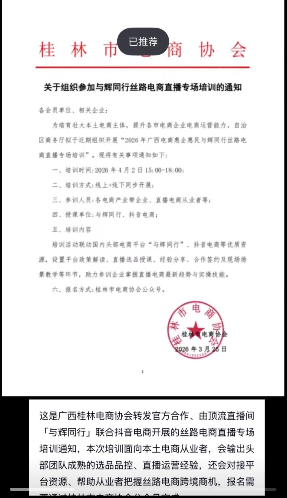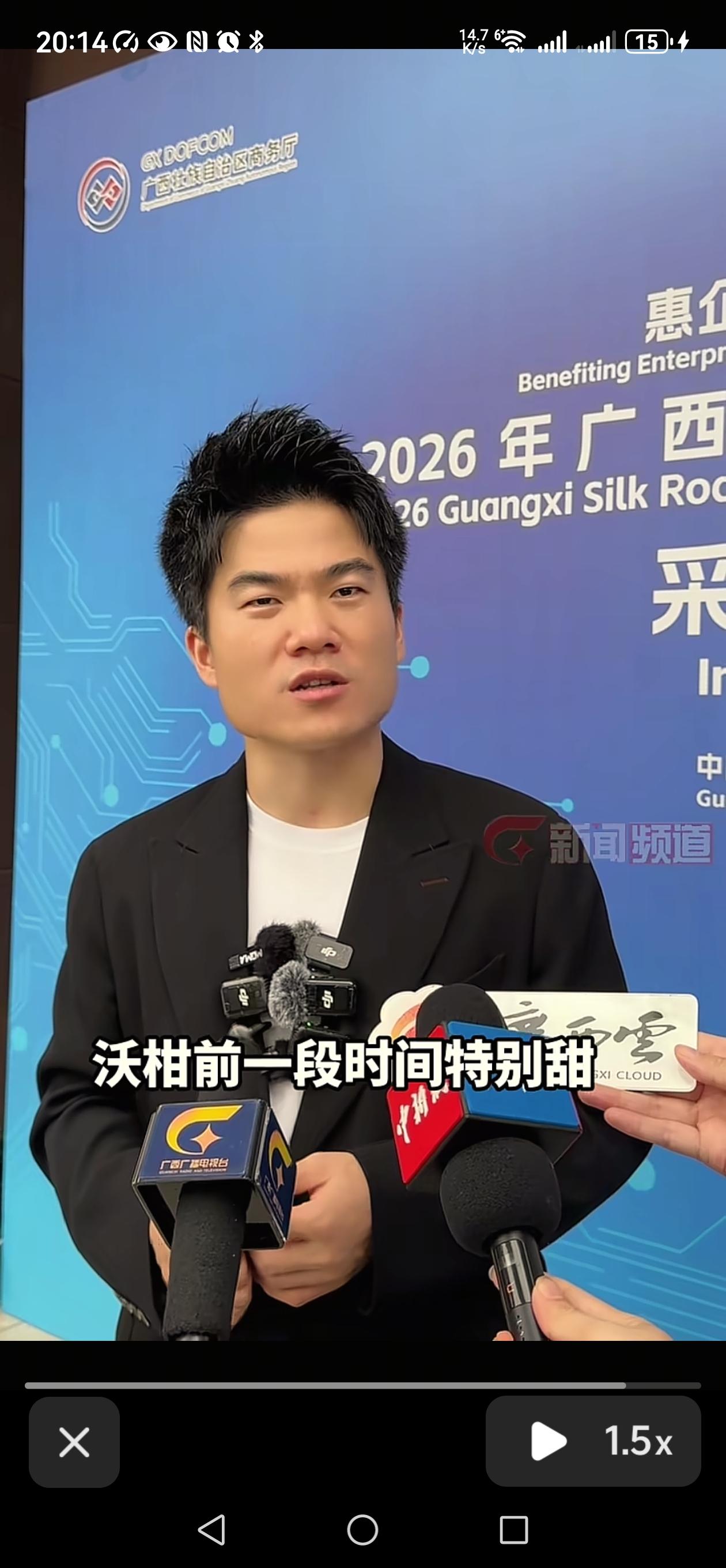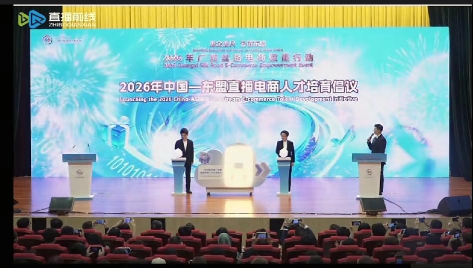 时隔两月,董宇辉又来广西了,2026年广西电商惠企惠民与辉同行丝路电商直播专场培训,董宇辉作了专题演讲,广西给予东晖最大的排面,本次活动的启动仪式,由他和相关领导共同按键开启。 董宇辉的演讲还带着PPT,图文并茂,演讲的内容接地气,结合广西和东盟电商直播的发展和现状,给出了很多中肯的建议。比如他最爱吃的榴莲,他给马来西亚的榴莲供应商提了自己的意见。 董宇辉接受记者采访时格外开心,他谈到了抛绣球,广西公文包,这是广西特有的梗。他还对广西的三样水果赞不绝口,打破了酸的局限的钦蜜9号,有芬芳味的滑皮金桔,一直很甜的沃柑。爱吃水果的他和广西的不解之缘,真是命中注定。