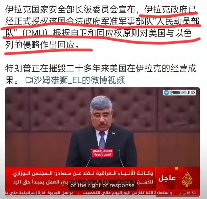 这个消息真令人震惊,公知天天在头条上发“伊拉克现状”的小视频,我们都看到,自从美国推翻了萨达姆,伊拉克就拥抱了文明,过上了发达富裕文明民主的好日子, 那些小视频都说,伊拉克对美国很感激,现在的伊拉克,高楼林立,人人带着自信的笑容, 可是这个伊拉克高官说,他已经授权准军事部队反击美国和以色列了, 伊拉克不是拥抱文明了吗?怎么准备对文明开战了? 那些发小视频宣扬伊拉克拥抱文明的大小公知,是不是撒谎了?