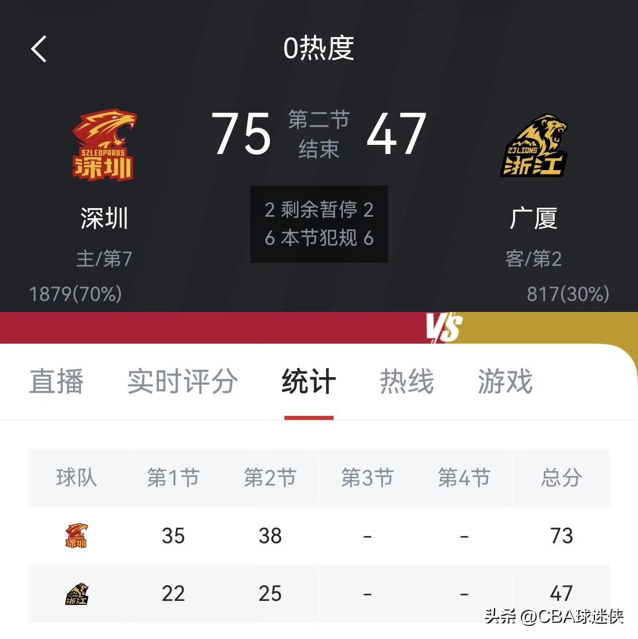 卫冕冠军天塌了!半场狂输28分,这还是那支铁血广厦吗? 半场47:75,卫冕冠军广厦男篮被深圳队打爆了!你敢信? 更扎心的是——深圳队自己还打丢了至少4、5个快攻上空篮!要是稍微稳一点,半场80分真不是梦。而广厦呢?赖以成名的防守被撕得粉碎,外线一步过,内线随便扣,连篮板都保护不住。 但别急着下结论。 这绝不是广厦的真实水平。卫冕冠军不会一夜之间变鱼腩,今天更像是“深圳状态爆棚”+“广厦集体断电”的巧合剧本。季后赛级别的防守硬度不可能突然消失,调整过后,下半场大概率会看到不一样的广厦。 不过话说回来,半场丢75分,对于一支靠防守吃饭的球队来说,已经是严重警告了。 你觉得广厦下半场能翻回来吗?
