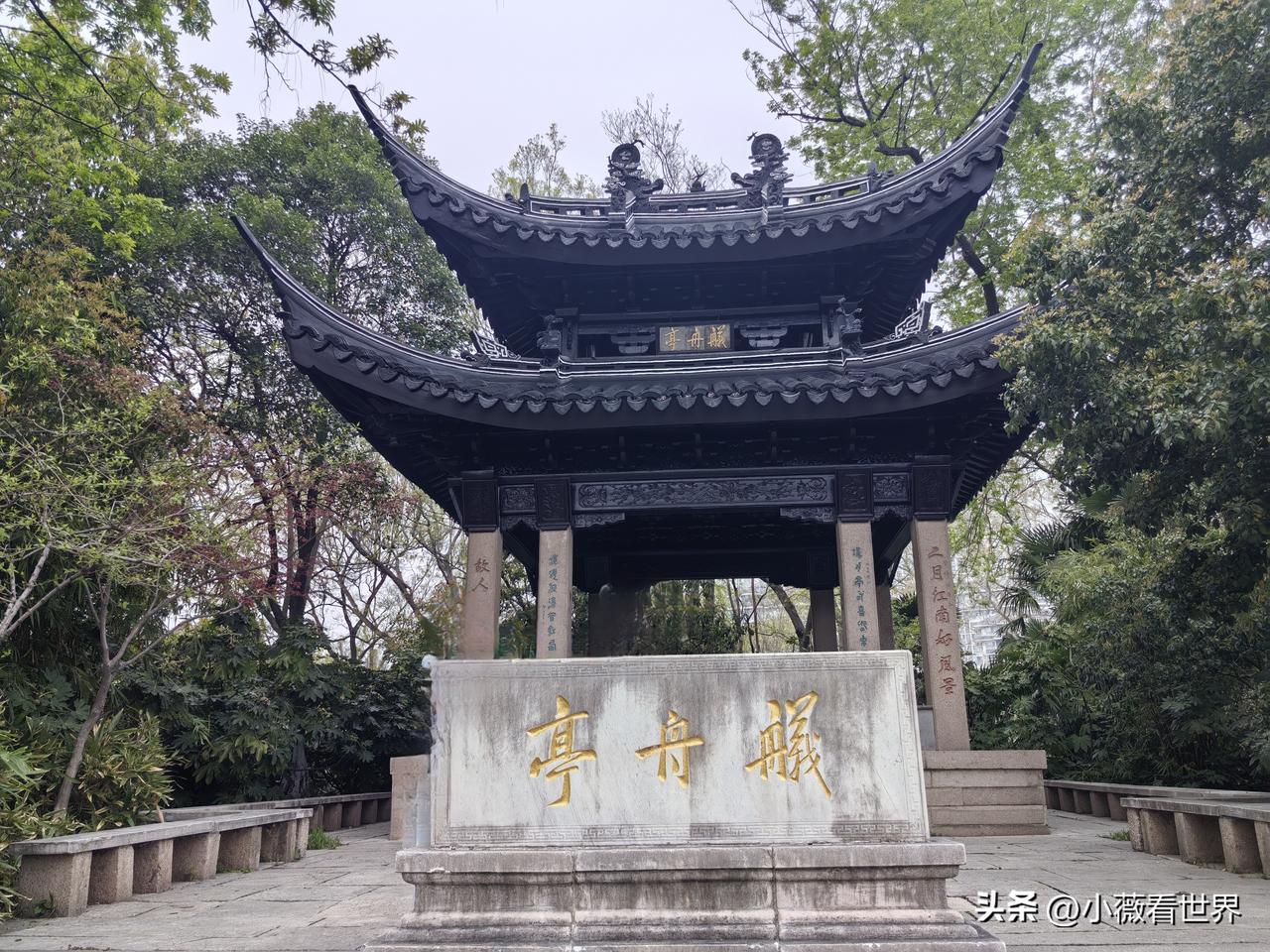 说到我们这里东坡公园 ,必然离不开舣舟亭 ,它也是常州东坡公园的核心古迹,为纪念北宋文豪苏东坡而建。 东坡先生,和我们常州可真是有缘,一生来过14次,并写下了与常州有关的诗66首、词10首、散文103篇。 公元1101年,东坡先生自儋州获赦后,最后一次返归常州,并在这里度过了人生最后的40多天。闻听先生病逝,“吴越之民相哭于市”。 南宋时,常州百姓为纪念东坡,在其当年泊舟登岸处建亭,取名“舣舟亭”。“舣舟”即停船靠岸之意。 舣舟亭是苏东坡乘船来到常州停船上岸的地方,它建在公园的最高处,精美砖雕和木雕,有二龙戏珠与苍松仙鹤等寓意的图案。 舣舟亭基址原名文成坝,传说常州历来人文荟萃,为保住常州才气不东流,因而在古运河上筑坝使河水绕个大弯东去。 清代康熙、乾隆二帝都曾6次南巡,在常州府舣舟亭留下墨宝诗文以表达对这位文坛领袖的仰慕。 图5“坡仙遗范”就是康熙大帝留下的墨宝。多谢残灯不嫌客,孤舟一夜许相依。 “归去来兮,清溪无底,上有千仞嵯峨;画楼东畔,天远夕阳多。”苏东坡是常州人文的千年,常州是苏东坡一生的牵挂。