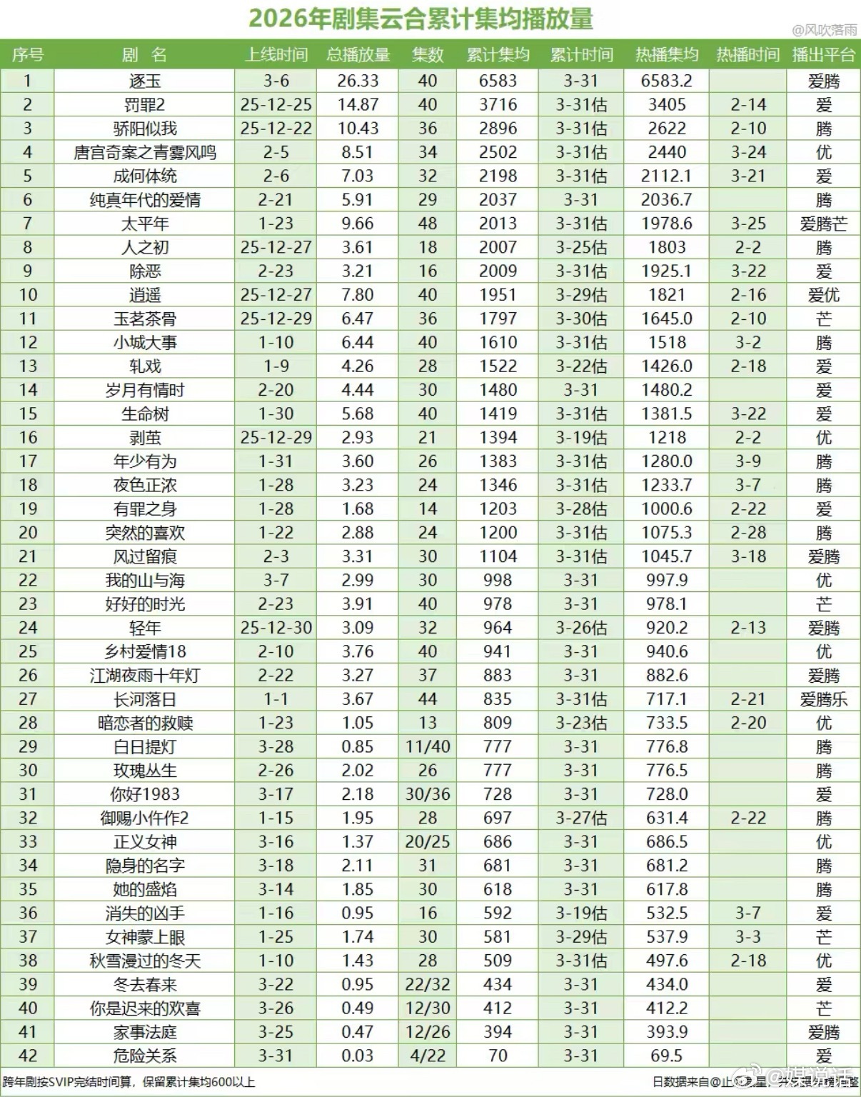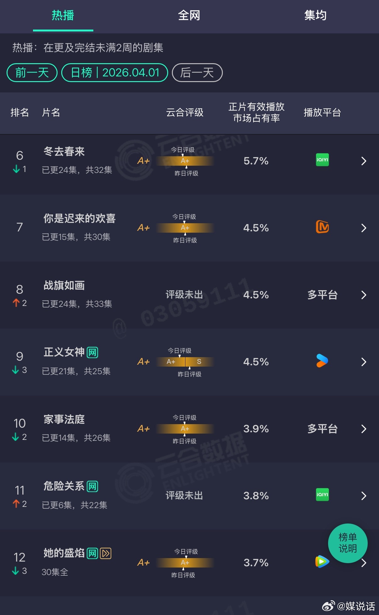 最新云合3.9%排名第十,🥝🐧双平台站内热度5000+、21000+,热播期集均394w……可以说毫无热度讨论度和存在感,怎么回事?