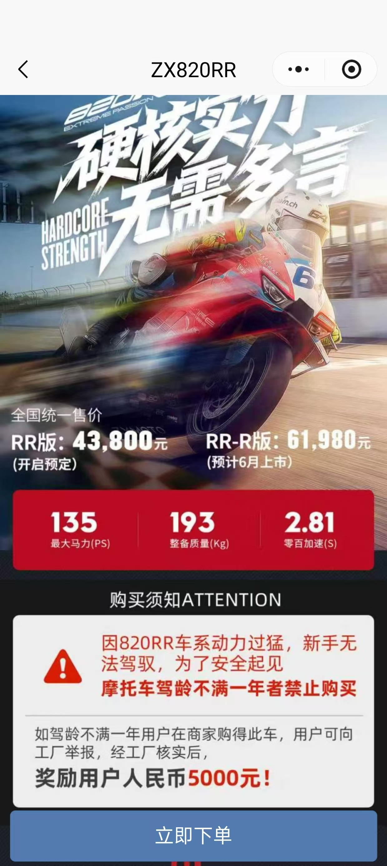 张雪机车防新手限购成代购热门 自从张雪夺冠后,国内掀起了一股摩托热,张雪机车也是紧急限购,因为这玩意真的太猛了,零百加速只要2.81s