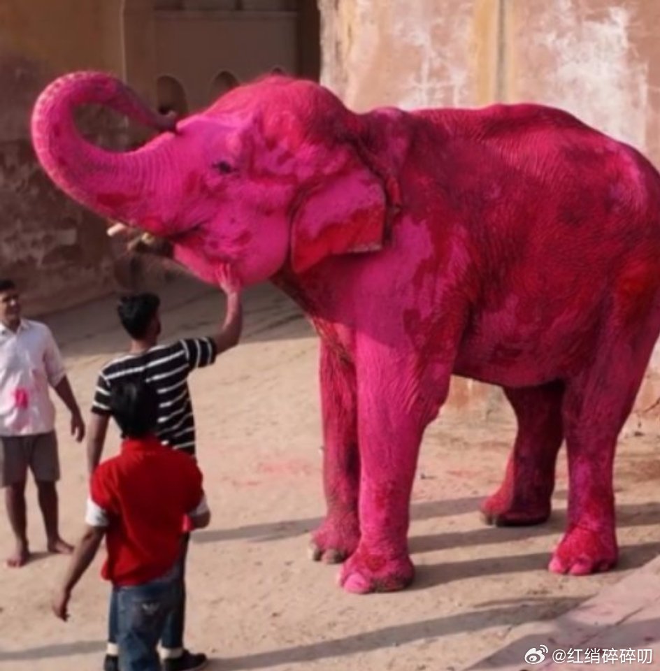 印度65岁大象死亡生前被涂粉色颜料印度真的是个很奇怪很别扭的国家,你们他们国家不尊重动物吧,大象在他们国家的宗教地位又很高!你说他们尊重宗教吧,他们又能把大象抹成全身粉红,只为拍摄!!