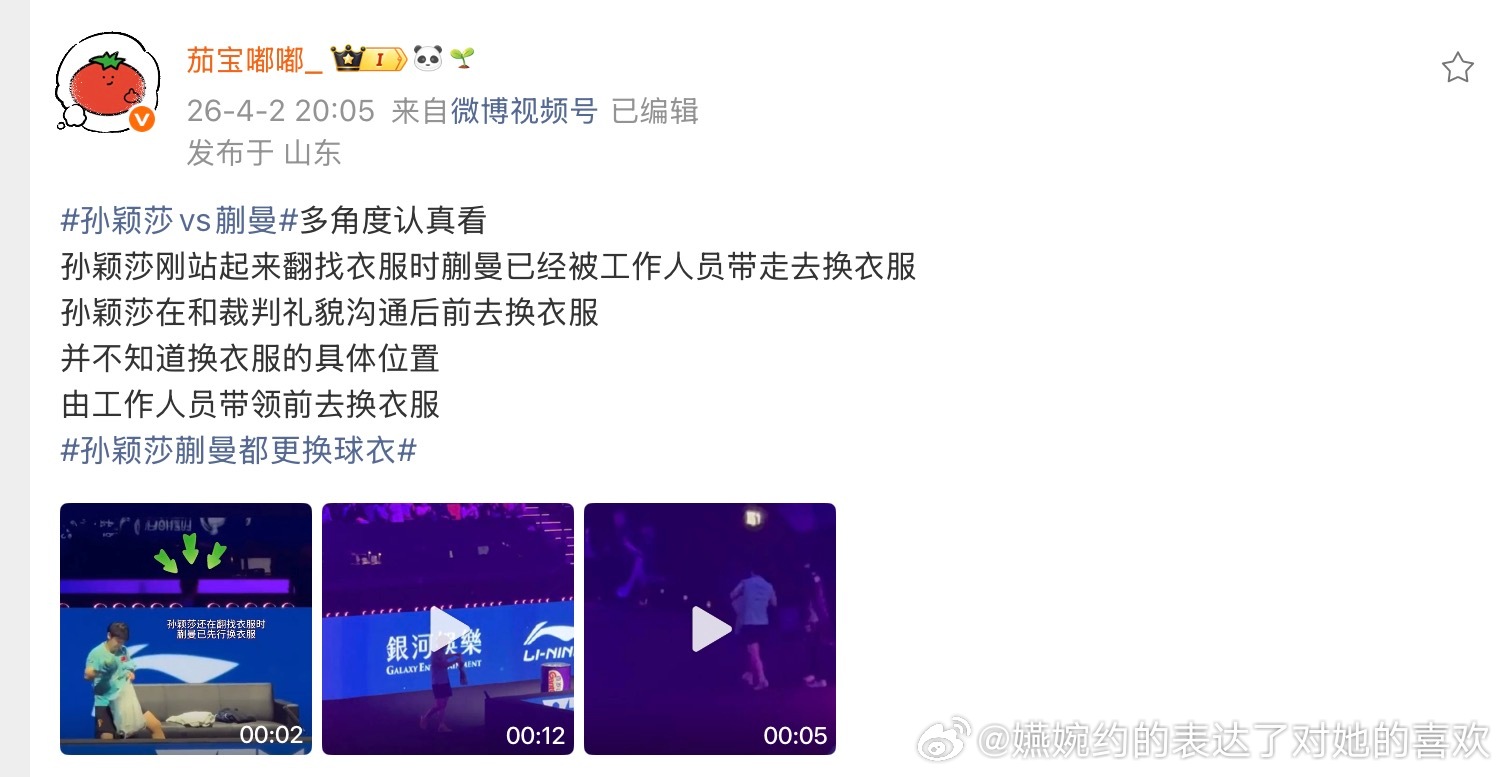 孙颖莎蒯曼都更换球衣明明是蒯曼先去换的球衣,结果导播只切孙颖莎一个人,导致孙颖莎