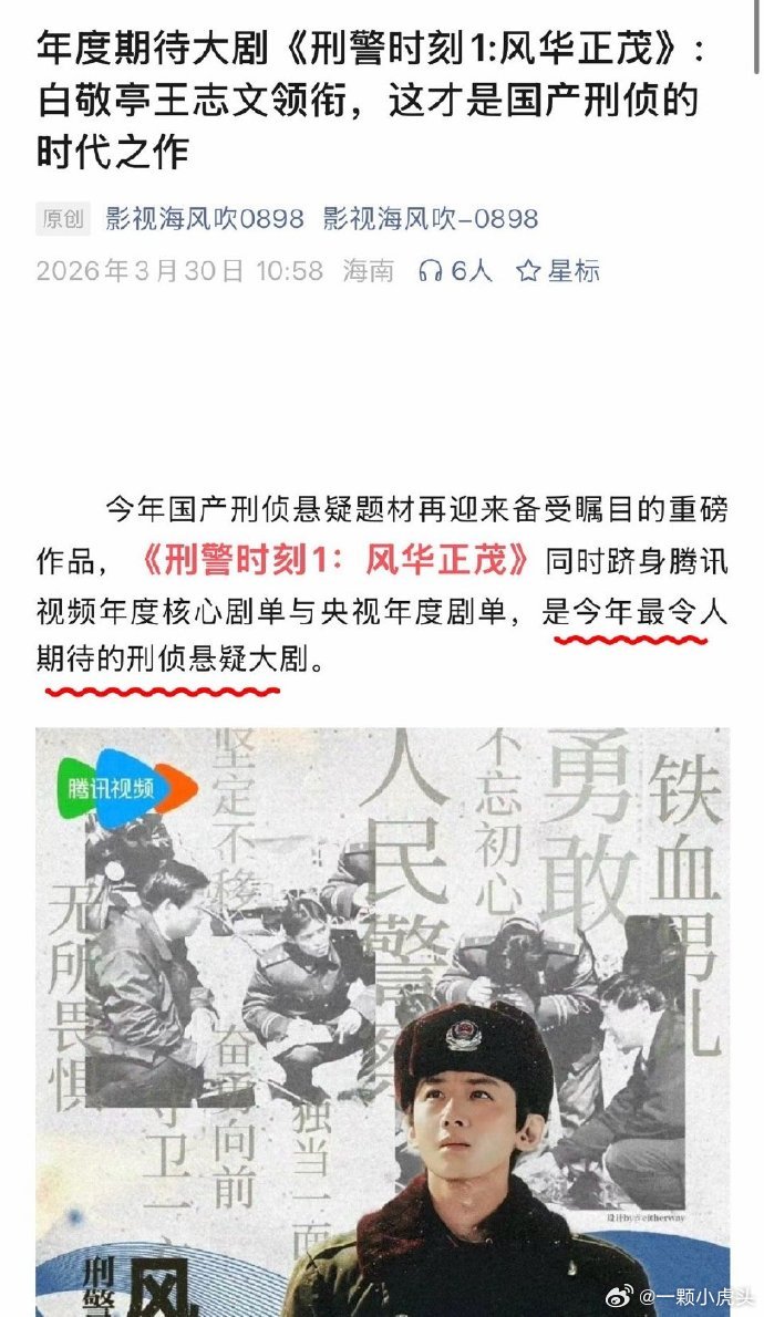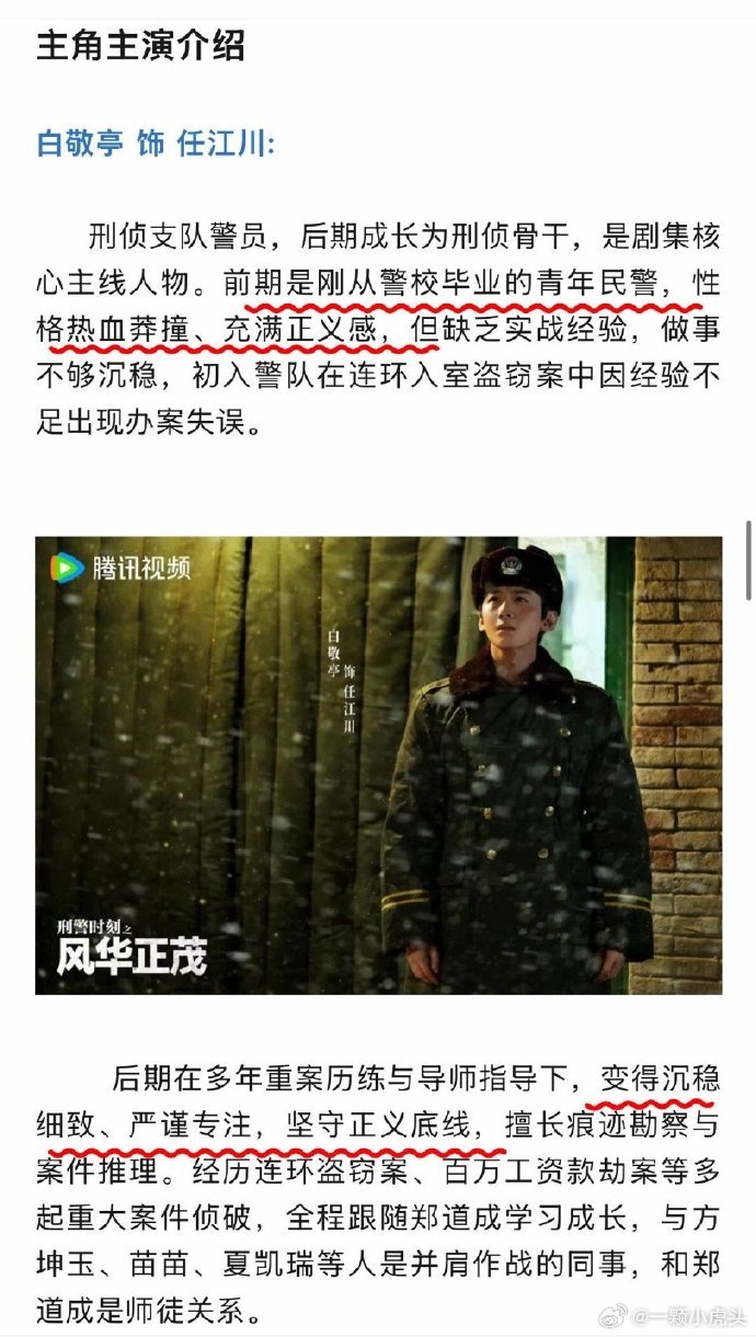 白敬亭《刑警时刻之风华正茂》介绍来了,剧集核心围绕青年刑警任江川,电影标准级别打造,真实大案、重点扶持项目、全员实力派!最快于今年冬季排播!期待值拉满!