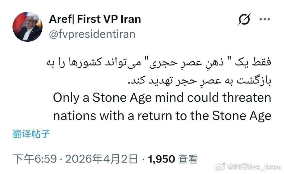 伊朗第一副总统穆罕默德·礼萨·阿雷夫:只有石器时代的脑袋,才会用“回到石器时代”