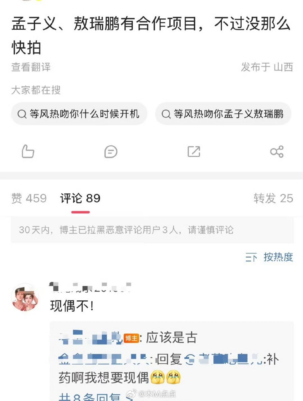 看到之前耀客单宣孟子义出演的一手摘星一手捶地,网传男主在传敖瑞鹏。之前传他们的是现偶《等风热吻你》 目前两家粉丝因为新剧《一手摘星一手捶地》吵起来了,为什么会吵啊?🤔