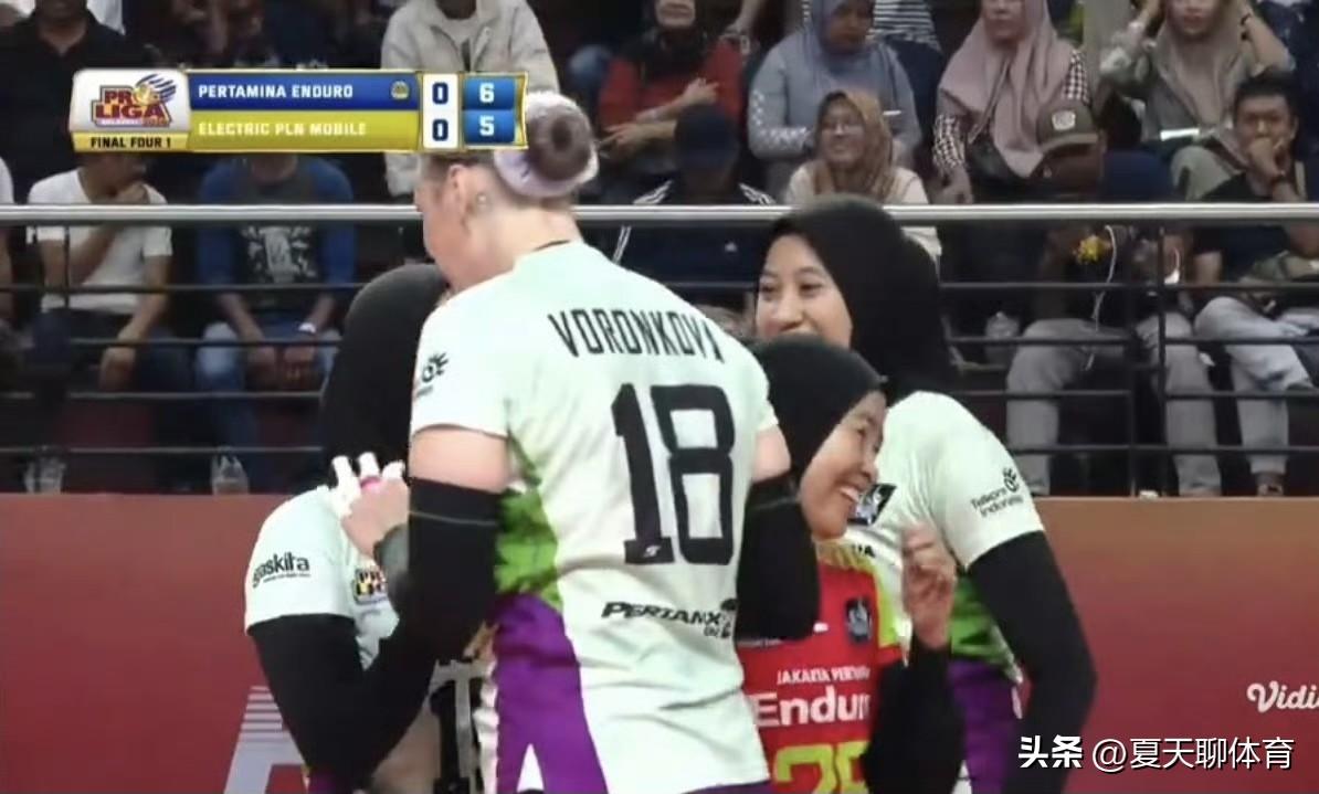 妥妥的劳模啊!沃龙科娃今晚上已经出现在了印尼女排联赛赛场上!昨晚上还跟上海女排一起夺冠,今天可就出现了印尼,这速度,这敬业精神,天选打工人!怪不得昨晚上走得那么着急,连庆功宴都没有参加!去印尼联赛怎么包裹得这么严实,害怕受伤吗?沃龙科娃还是有实力啊,昨晚上的飞机,今天早上抵达,不跟队伍合练,晚上就能直接上场打球!