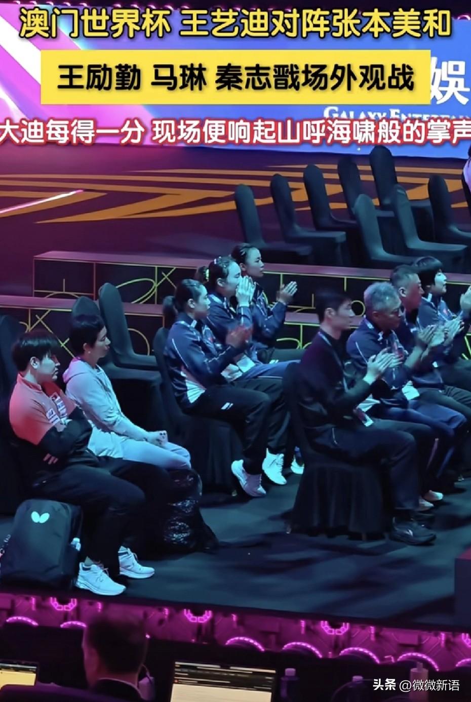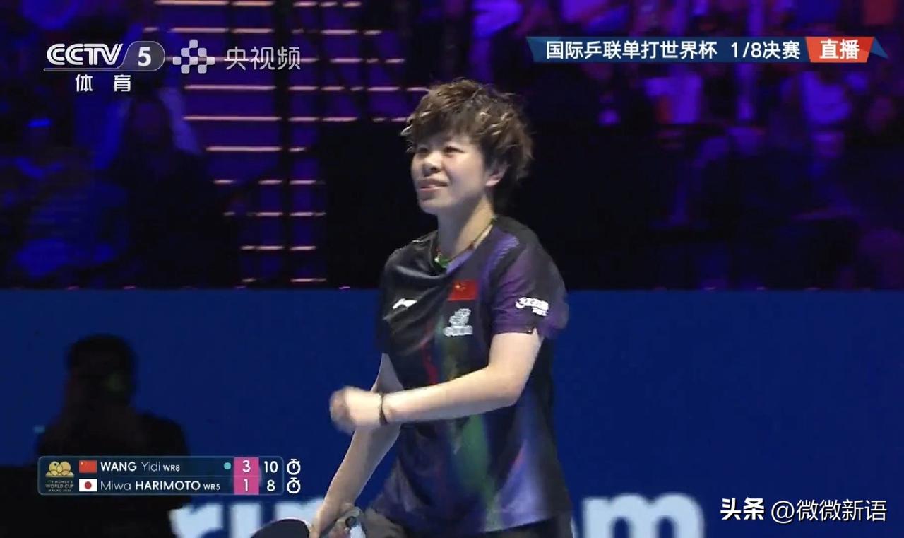 张本美和估计又被打哭了。 今晚王艺迪打的真好,后面张本美和也没有好的办法,王艺迪是4-1战胜张本美和,晋级女单8强,下一轮女单1/4决赛王艺迪将对阵温特,希望大迪继续保持好的状态。 王艺迪的场外是于子洋,看到王晓彤、徐奕、覃予萱、王励勤、马琳、秦志戬都在看大迪的比赛,王艺迪赢下比赛的那一刻,笑的很开心,大迪今天是有备而来,打的也很释放,替大迪开心,今晚杜凯琹也来看大迪的比赛,看到大迪赢了,杜杜也会为大迪开心的吧。 国乒女队孙颖莎、王曼昱、王艺迪晋级女单8强,陈幸同的比赛在明天,同同也加油。今天王曼昱赢了伊藤美诚,王艺迪赢了张本美和,都很棒啊,日乒女队四人参赛,现在只有桥本帆乃香还没有打比赛,她的比赛是在明天。 很久没看到大迪赛后笑的这么开心了,现场的球迷也一直在给大迪加油,现在大迪也拿到了伦敦世乒赛团体赛参赛资格,而且世界杯也打进8强,争取打进四强,打进四强就可以拿到奖牌了。