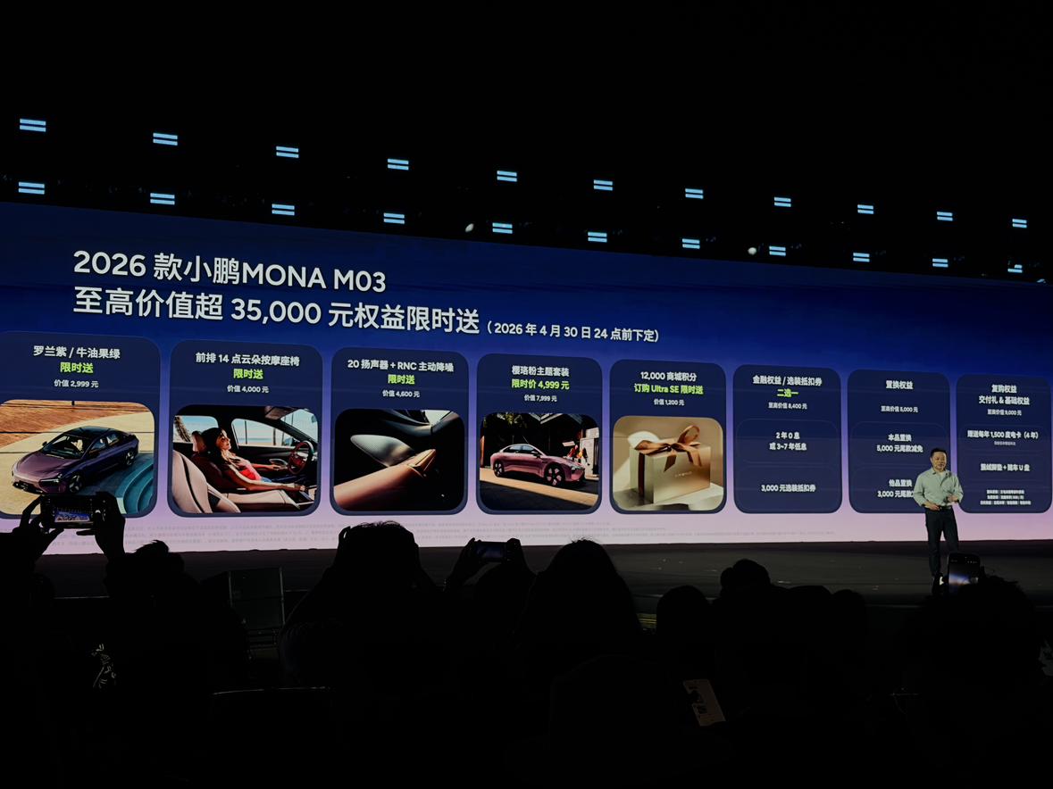 发布会结束了,先来报价格了~ 26款的小鹏MONA M03共推出6款版型 官方指导价: 510长续航Max版 12.98万元 610超长续航Max版 13.98万元 540超长续航Plus版 11.98万元 640超长续航Plus版 12.98万元 510长续航Ultra SE版 14.18万元 610超长续航Ultra SE版 15.18万元 (Ultra SE 车型预计2026年8月交付) 还有各种免费送: 全新罗兰紫、牛油果绿外观漆 原价2,999元,限时免费; 同级唯一20扬声器AI音响+RNC主动降噪 原4,600元,限时免费; 同级唯一前排14点云朵按摩座椅 原4,000元,限时免费; 还有打骨折的配置 米其林轮胎+运动轮毂套餐限时选装 原价5900,现在4,000元; 樱珞粉专属主题套装 原7,999元,限时仅4,999元; 看完发布会,我只想说,小鹏M03是目前小鹏汽车卖的最好的车,而且女性占比很高,年轻用户集中,为了销量,为了新车用户,也是很拼~【来自懂车帝车友圈】