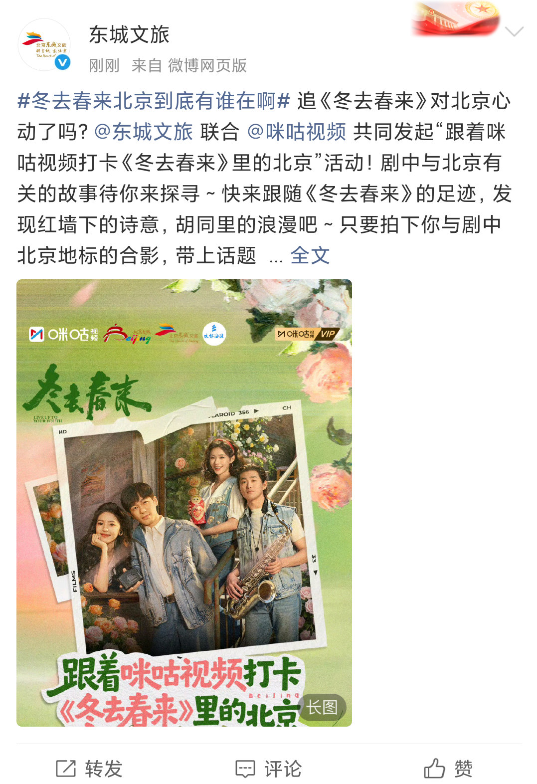 冬去春来北京到底有谁在啊 救命,打开微博被咪咕视频和北京的文旅刷屏了!😱从东城文旅到海淀文旅,从北京站到角楼,这是要把整部剧的取景地都翻出来带我们打卡一遍吗?追个剧,官方直接把剧里的北京场景整理出来,邀请我们去打卡,这阵仗也太大了!看完冬去春来想连夜去北京