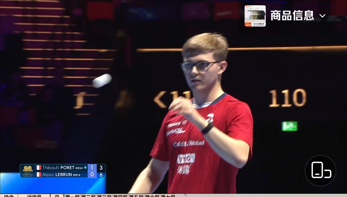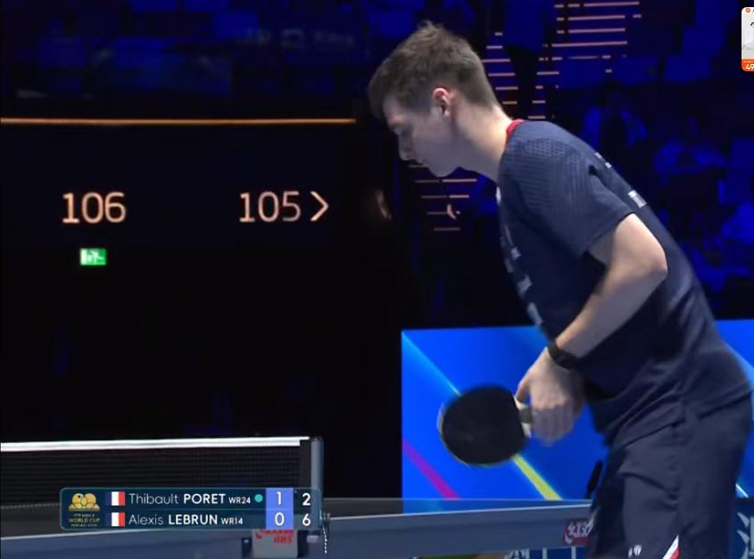 大勒布伦4:1泊雷特,晋级澳门世界杯男单8强,下一场对阵户上与雨果的胜出者! 4月2日,澳门世界杯男单1/8决赛 大勒布伦4:1泊雷特, 3:11,16:14,13:11,11:4,11:8 两位法乒选手的队内对决, 实力接近,强强对抗, 两个人一人一个发球违规, 31度,30.8度, 裁判的眼睛厉害👍, 但我觉得打乱比赛节奏, 影响比赛的连贯性,不好! 泊雷特今年21岁,世界排名24位, 大勒布伦今年22岁,世界排名14位,不得不承认法乒选手实力在提高, 而且非常年轻,勒布伦兄弟加上 泊雷特和科顿,都比较年轻, 对国乒小将是非常大的威胁!