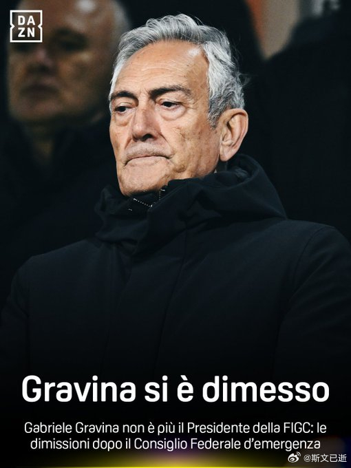 意大利足协主席格拉维纳辞职,接下来该轮到国家队主教练加图索了。