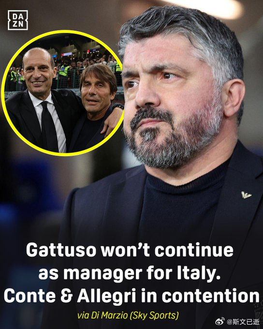 刚看了看报道,新帅候选阿莱格里和孔蒂很热,甚至还提到了瓜迪奥拉... 意大利连续3届无缘世界杯世界杯 意大利足协主席辞职