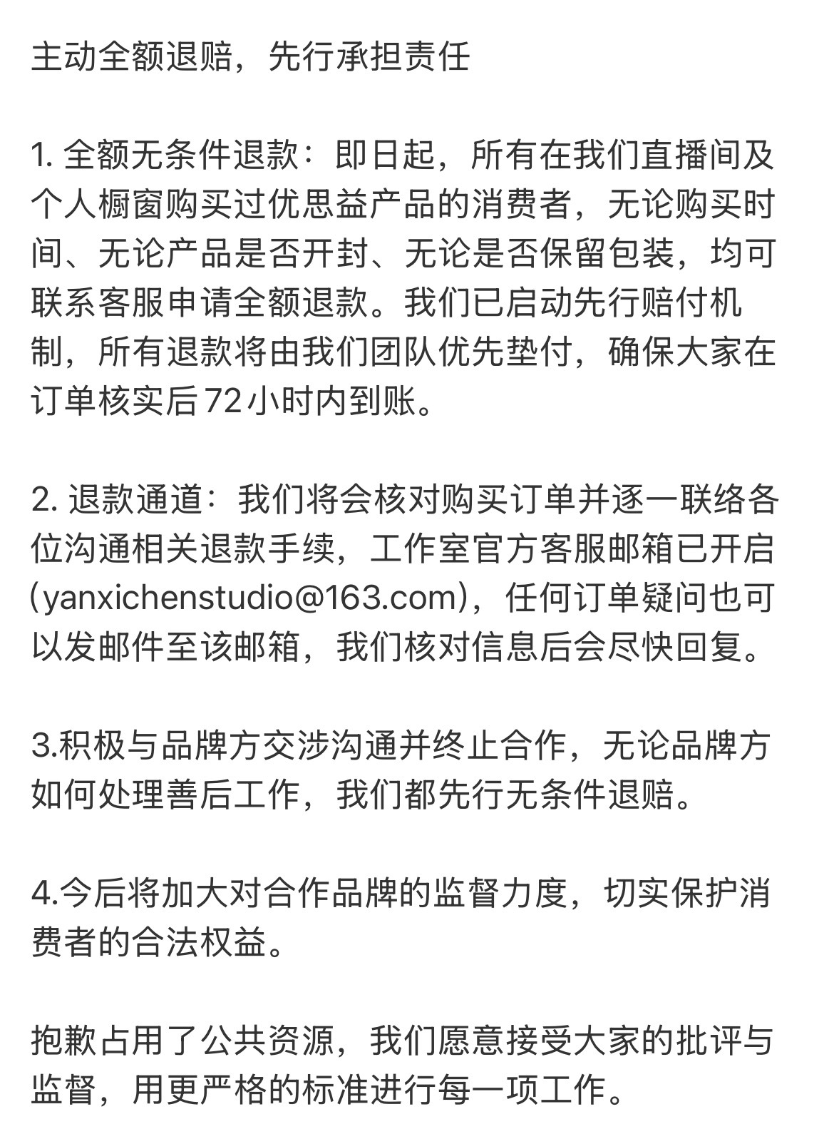 陈妍希方致歉还得是陈妍希啊,不管产品开没开封,用没用,只要在她这买的,就给你退,而且是她们自己垫付!好感度拉满!