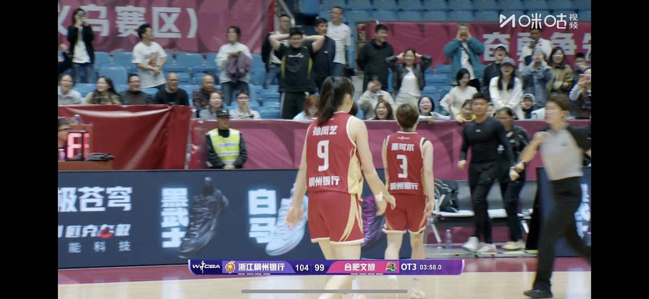浙江女篮全华班三加时击败三外援的合肥女篮 比分是109:107 我刚刚看完新疆女篮击败山东女篮的比赛,然后通过WCBA赛程页面看到浙江女篮和合肥女篮的比分还在变动,我就知道打加时了,然后进去一看,已经是第二个加时的最后30多秒 这时,已经拿下全队最高分的浙江女篮三分射手董可尔再一次站了出来,用两记三分再次追平比分,这样进入三加时 在进入第三个加时之后,浙江女篮的年轻球员心态和气势更稳更强,浙江女篮9号孙凤艺开局就拿5分,此后就在第三个加时稳稳压制着合肥女篮,最终合肥女篮没能逆转回来,输了这场比赛! 大比分是1:2,下一场去到合肥女篮主场,浙江女篮估计想再赢就难了! 合肥女篮大外援纳雷德50分15板都不能救主,因为合肥女篮国内球员真的不给力啊!这个也怪主教练,张敏今晚上场时间太少了! 当然,也有可能主教练考虑浙江女篮是张敏老东家,所以就讲了人情世故,毕竟他认为三外援在手,不可能输的!😂