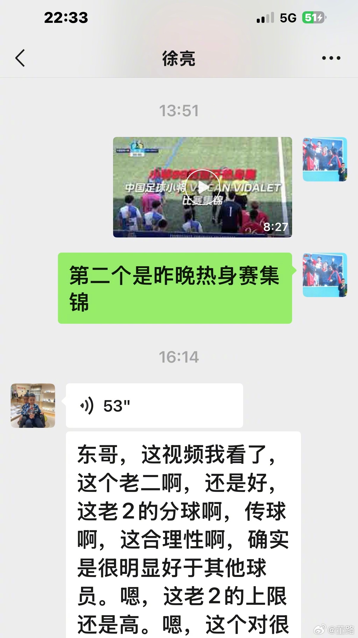 亮子徐亮看完中国足球小将 09热身赛集锦,给老二的评价有点高